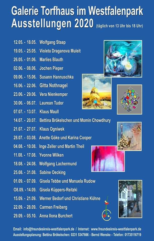4. August 2020 R E C O M M E N D E D: @ Torfhaus Westfalenpark Martin Theil (Bruchsteinwände) und Inge Zeller (weiße Wände) Nächste Woche an derselben Stelle: Yvonne Wilken. Save the Date🙂😉 Teilen mit: Klicke, um auf X zu teilen (Wird in neuem Fenster geöffnet) X Klick, um auf Facebook zu teilen (Wird in neuem Fenster geöffnet) Facebook Gefällt mir Wird geladen … Veröffentlicht von yvonnenodaywithoutfinearts Oberstudienrätin für Englisch und Französisch im Ruhestand. Kunstschaffend und -begeistert und reisefreudig Zeige alle Beiträge von yvonnenodaywithoutfinearts
