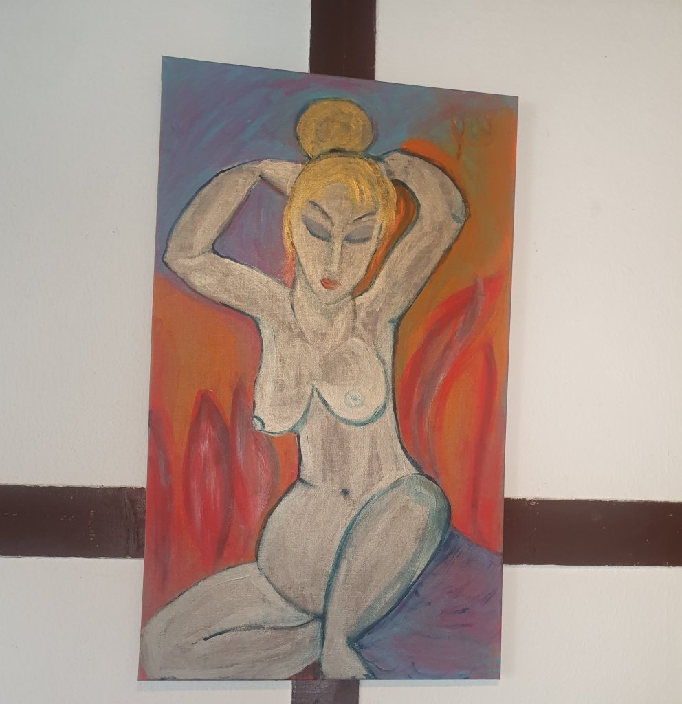 Am 23.8., dem Tag der heiligen Yvonne, muss es natürlich ein #yvonnewilkenpainting sein…dieses, das in verschiedenen Ausstellungen schon hing, zuletzt an der herrlichen Steinwand des Torfhauses, bezieht dich auf eine besondere Geschichte über Modigliani. Das Gemälde, vollständig mit meinen Farben interpretiert und auch in einigen Aspekten von Modiglianis Caryatide abweichend, übernimmt vom italienischen Künstler nur die Silhouette, die Modigliani mit blauer Farbe auf hellem Papier in einer Linie gezeichnet hat, um sie als Studie für eine Skulptur zu verwenden. Wie viele Skulpturen Modiglianis, ist dieses Endprodukt jedoch verschwunden (man nimmt an, dass sie der Künstler selbst im Tiber entsorgte) und nur verschiedene Zeichnungen zeugen noch von diesem Plan. Ich sah die Originalzeichnungen 3/2018 in der Londoner Tate Gallery.