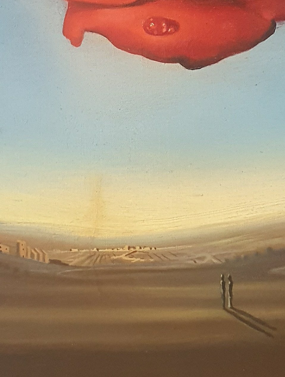 Die meditative Rose (1958) – ein Bild, das ohne die Dalí-typische Landschaft, auch von Magritte stammen könnte. Die Landschaft mit ihren Feinheiten ist umso erstaunlicher, als das Bild nur 36 x 28 cm groß ist – im Arpmuseum Bahnhof Rolandseck (noch bis Oktober)