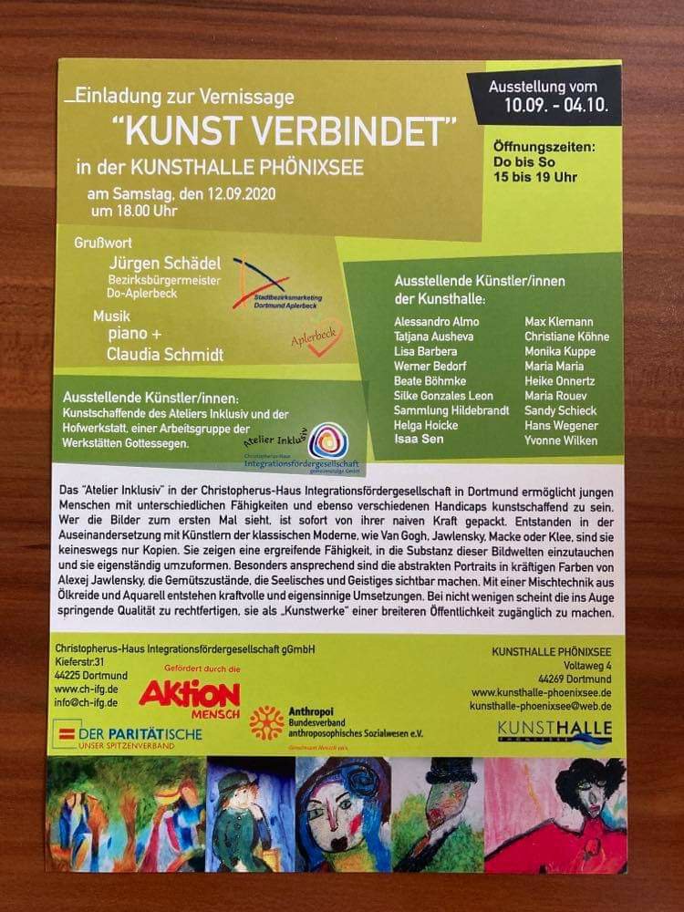 5. September 2020 R E C O M M E N D E D @ KUNSTHALLE PHÖNIXSEE, VOLTAWEG 4 (Dortmund-Schüren) Save the date! Teilen mit: Klicke, um auf X zu teilen (Wird in neuem Fenster geöffnet) X Klick, um auf Facebook zu teilen (Wird in neuem Fenster geöffnet) Facebook Gefällt mir Wird geladen … Veröffentlicht von yvonnenodaywithoutfinearts Oberstudienrätin für Englisch und Französisch im Ruhestand. Kunstschaffend und -begeistert und reisefreudig Zeige alle Beiträge von yvonnenodaywithoutfinearts
