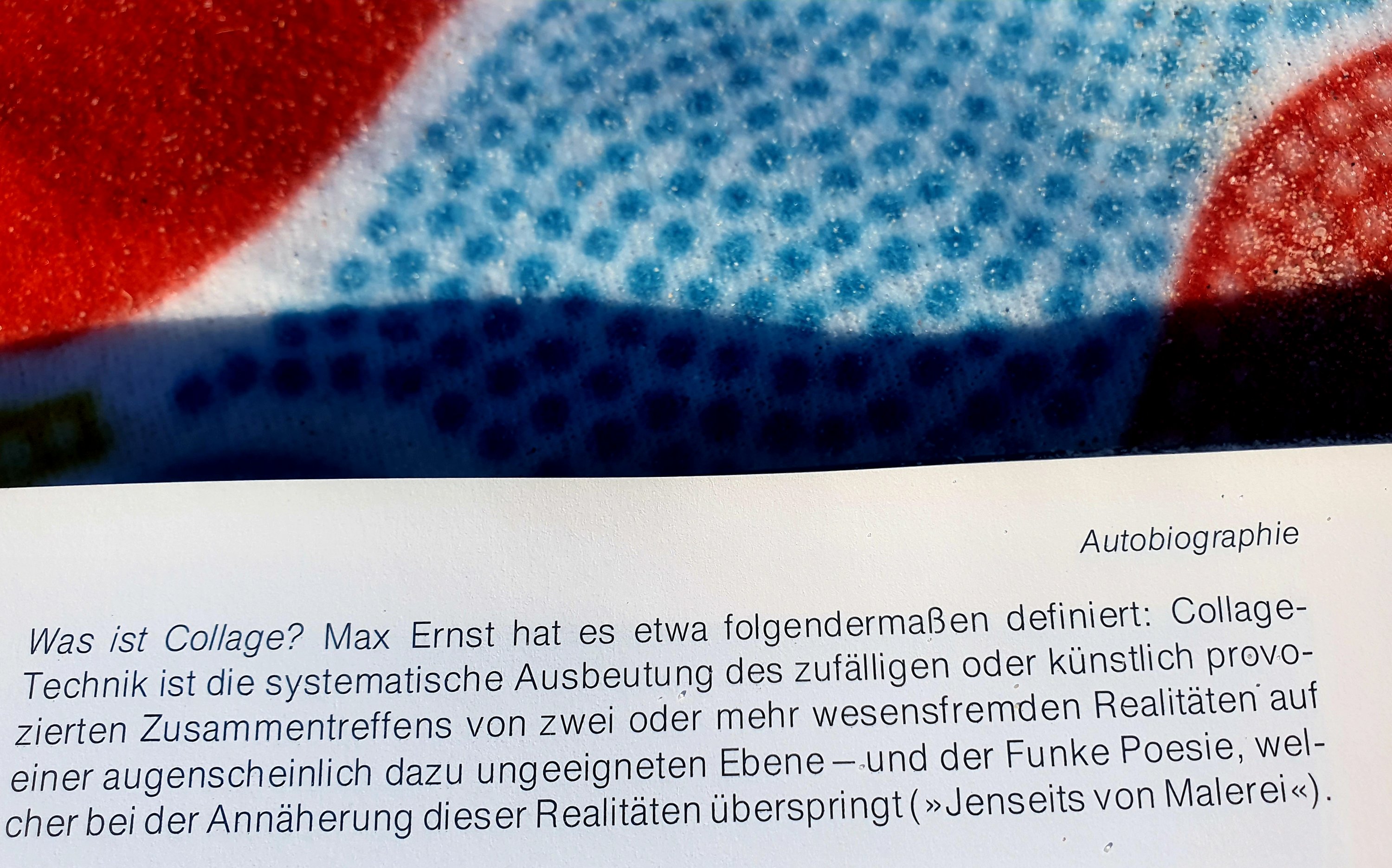 23. September 202023. September 2020 Art Quotation no. 142 by Max Ernst on Collages Strandlektüre: Max Ernst Biographie und Katalog von Werner Spies – sehr inspirierend (und interessant, was die Definition der Collage angeht, mit einem Beispiel v. Max Ernst aus den 1920ern) Teilen mit: Auf X teilen (Wird in neuem Fenster geöffnet) X Auf Facebook teilen (Wird in neuem Fenster geöffnet) Facebook Gefällt mir Wird geladen … Veröffentlicht von yvonnenodaywithoutfinearts Oberstudienrätin für Englisch und Französisch im Ruhestand. Kunstschaffend und -begeistert und reisefreudig Zeige alle Beiträge von yvonnenodaywithoutfinearts