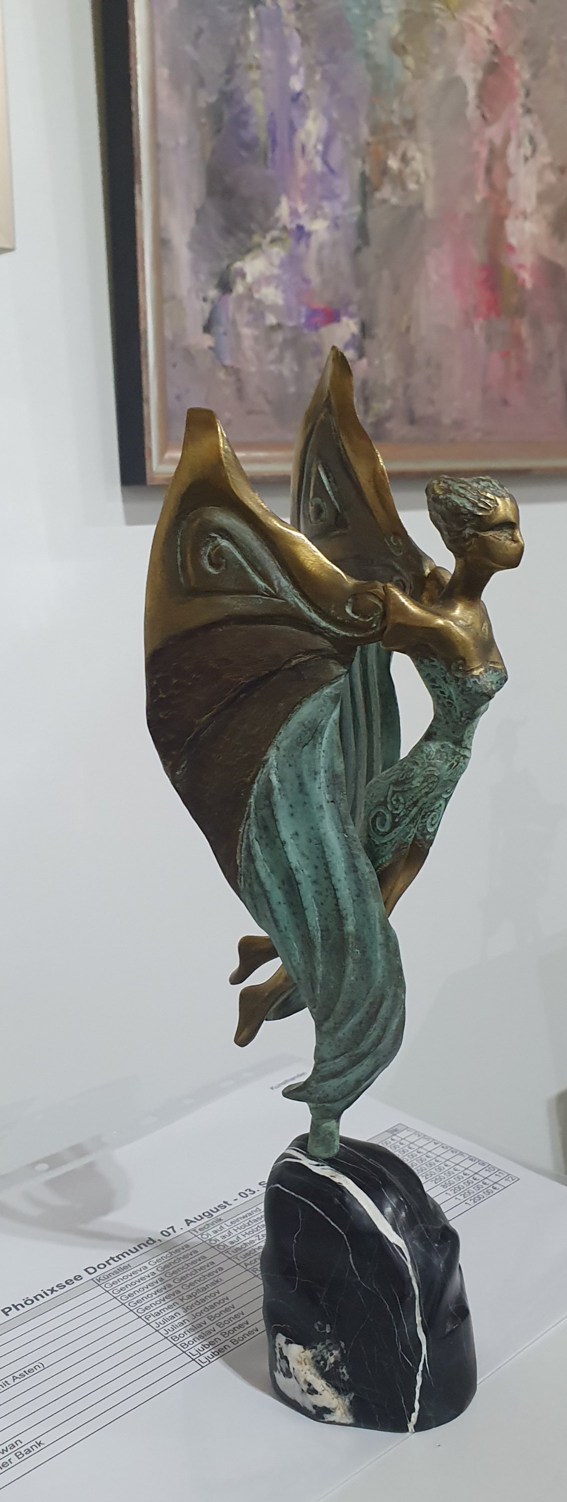 Einige gehen, die italienische Gruppe z. B., „Chimera“ wird morgen abhängen, die bulgarischen Künstler um die Galeristin Maria Rouev bleiben noch, doch die zauberhafte Nike von Ljuben Bonev verlässt uns, weil sie gestern verkauft wurde. Dagegen überrascht Werner Bedorf immer mit neuen digitalen Ideen, z. B. in Faltbildern, in denen man aus verschiedenen Richtungen Unterschiedliches sieht. Und das Atelier Inklusiv, das bei uns im September so eine großartige Vernissage gestaltete, feiert seine Erfolge in einer Finissage am Sonntag ab 15.30 Uhr (heute in den Ruhr Nachrichten)