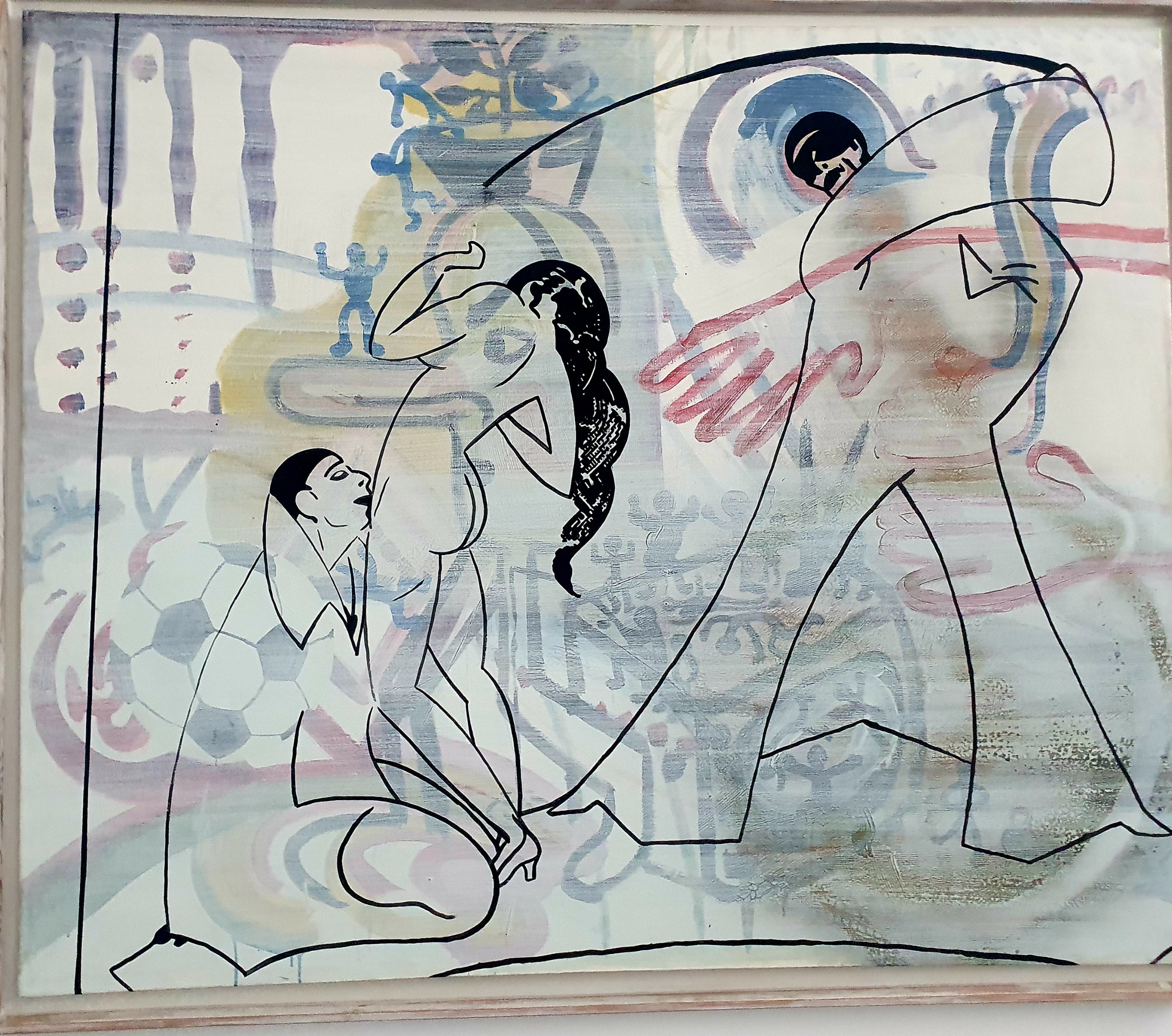 Das Gemälde des vielseitigen, vor allem für seine Ironie (auch dem Kunstbetrieb gegenüber) bekannten Künstlers, der im nächsten Jahr 80 geworden wäre, aber leider schon 2010 gestorben ist, trägt auch den Titel „Besame mucho“ (küss mich viel)😉 – ein typischer Wassermann eben (am 13.Februar geboren)