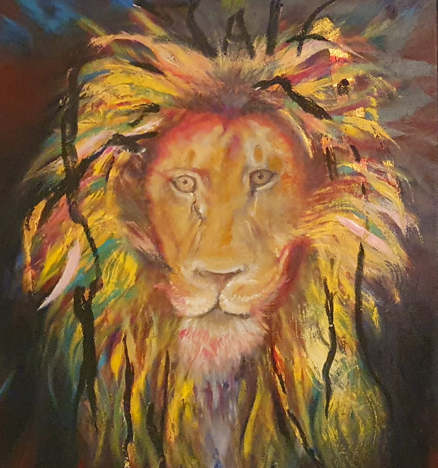 Der Löwe JAH (Öl auf Leinwand) aus Ralf Fiebags Löwenreihe, die auch am 5. und 6. Dezember im Kultursalon Schiller, Schillerstr. 37 (14-19h) ausgestellt werden wird, wurde heute verkauft @ Kunsthalle Phönixsee – ein sehr farbintensives, geheimnisvolles Bild, das den Betrachter durch den Blick des Löwen in den Bann zieht, bis er noch anderes entdeckt.