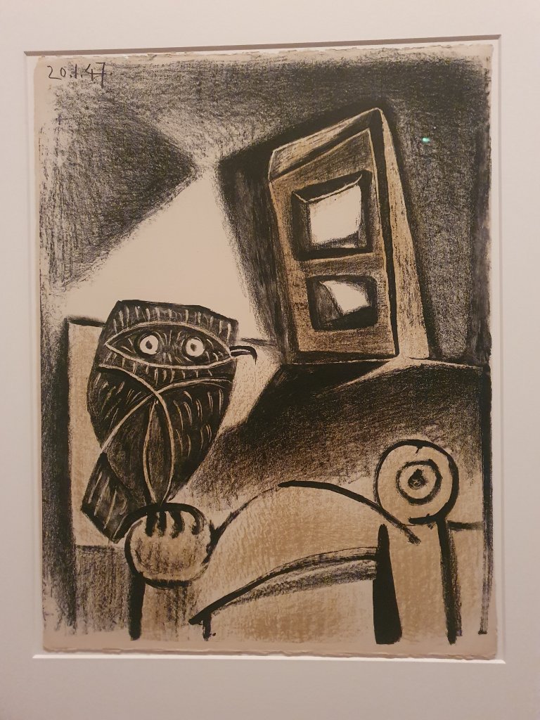 Charismatische Persönlichkeiten in einer charismatischen Ausstellung: PICASSO + MIRÒ im Picasso Museum Münster – berührende Fotos dieser Künstlerfreundschaft, berührende Zitate und berührende Gemälde, zum großen Teilen Lithographien und Radierungen, die Gemeinsamkeiten (z. B. die künstlerische Beschäftigung mit eher ungewöhnlichen Tieren und amüsanten Titeln versehen) und Unterschiede ausdrücken – wie in Picassos Eule mit Stuhl und Miròs Maus mit Schleiertuch (noch bis zum 31.1. 2021)