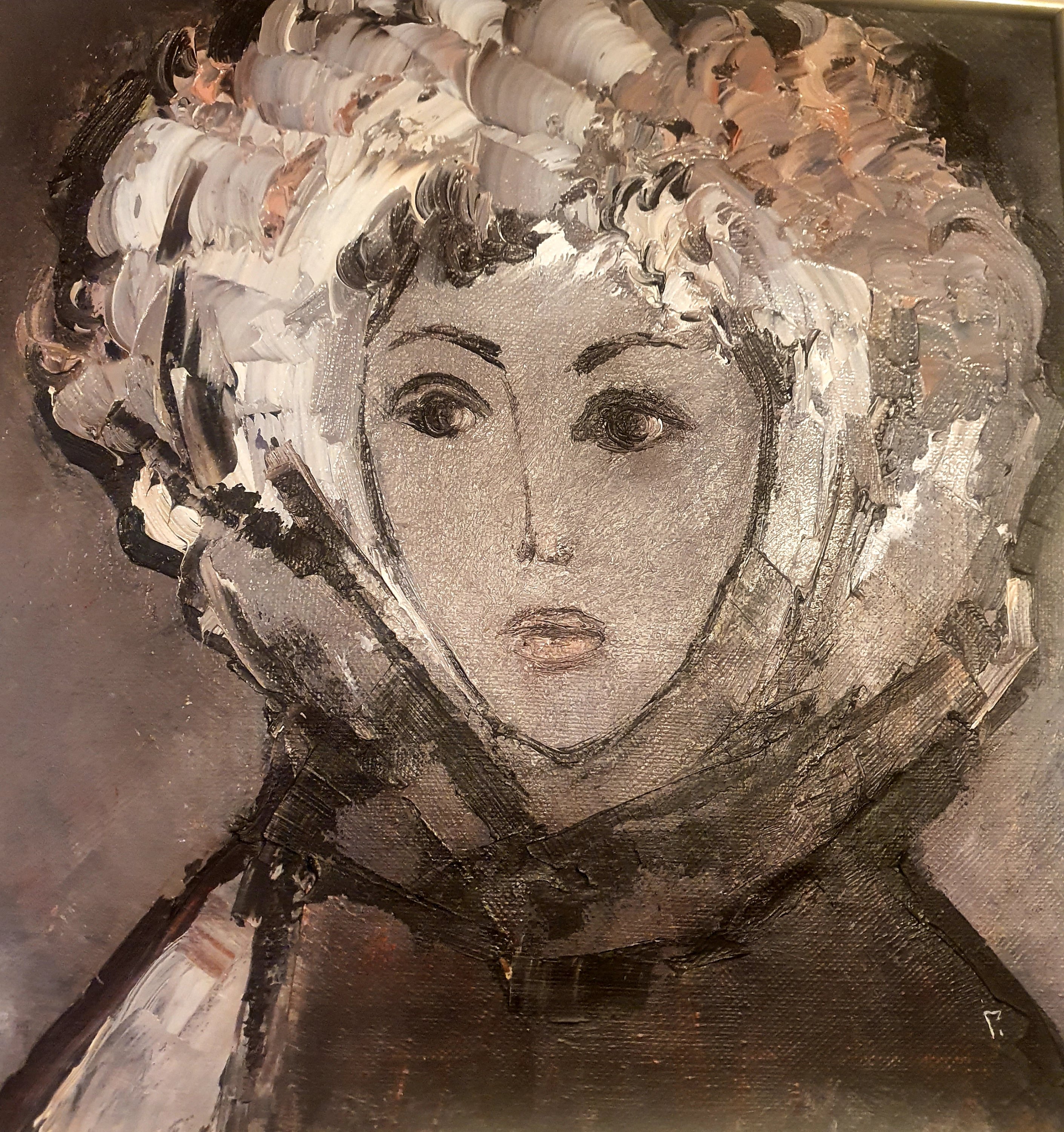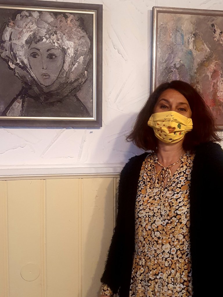 Die Galeristin Maria Rouev in front of ART by Genoveva Gencheva @ Haus Rode beim gestrigen Hörder Sehfest. Noch bis Ende November werden die emotional berührenden vielfältigen Werke der bulgarischen Künstlerin Genoveva Gencheva dort zu sehen sein. 2 Ölbilder von ihr hängen auch in der Kunsthalle Phönixsee