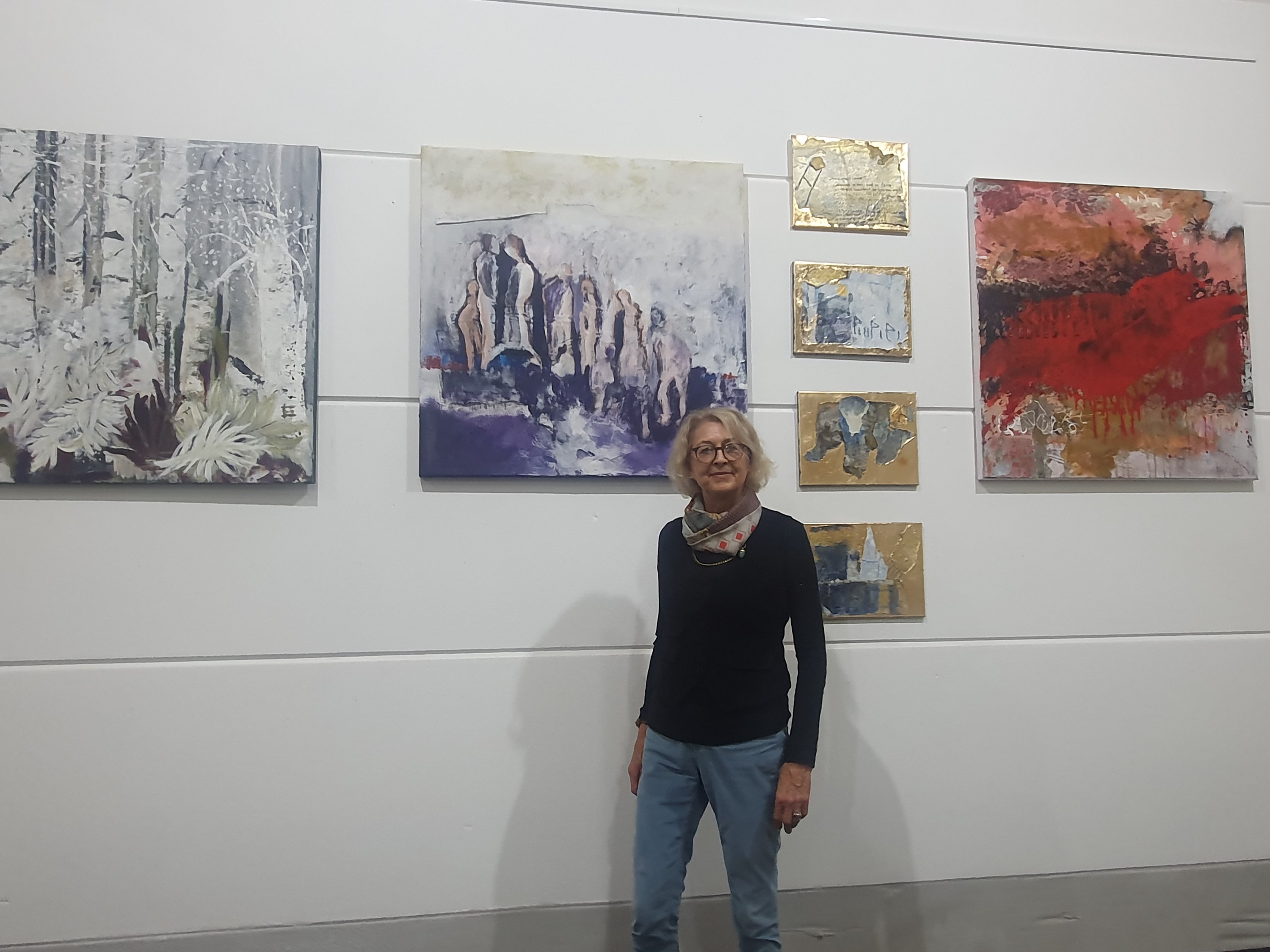 Aus Oerlinghausen in die Kunsthalle am Phönixsee (Voltaweg 4, Dortmund- Schüren) gekommen: auch wenn wir im November schließen müssen, kann man neben unseren vertrauten Künstlern noch an diesem Wochenende und von Dezember an das Werk einer neuen Künstlerin bewundern – in großer Vielfalt, abstrakt und figürlich, mit wundervollen Rottönen z. B., mit vorweihnachtlichem Blattgold und als Frottage: ELISABETH LAKEBERG