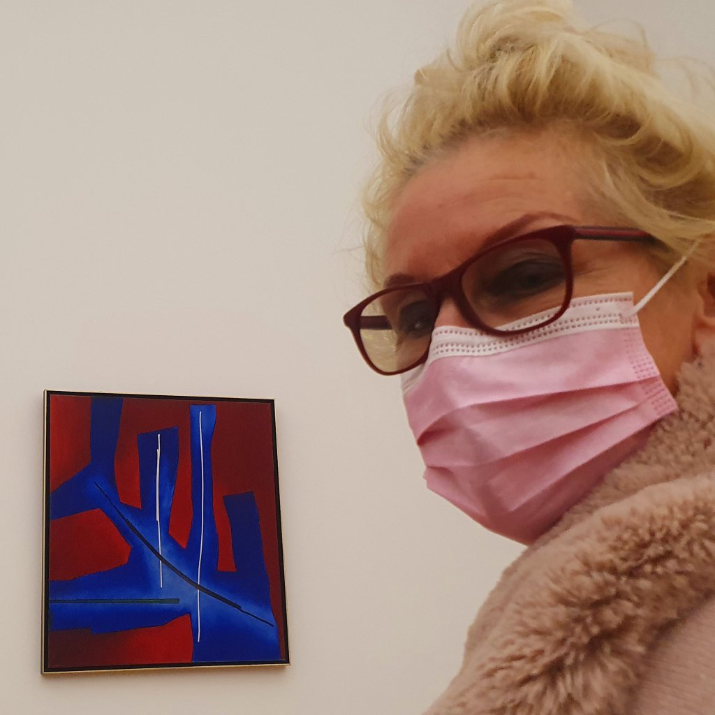 Vor dem kleinen Fritz Winter Bild, das wirkt, als leuchte es von innen (im Emil-Schumacher-Museum Hagen): „mit 2 weißen Linien“, 1970