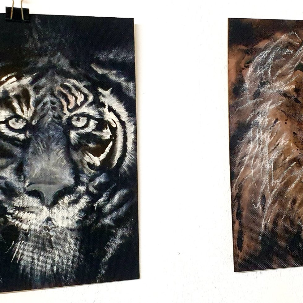 Animals in ART (40-44) 4 Lions and 1 Tiger by Ralf Fiebag, Dortmund