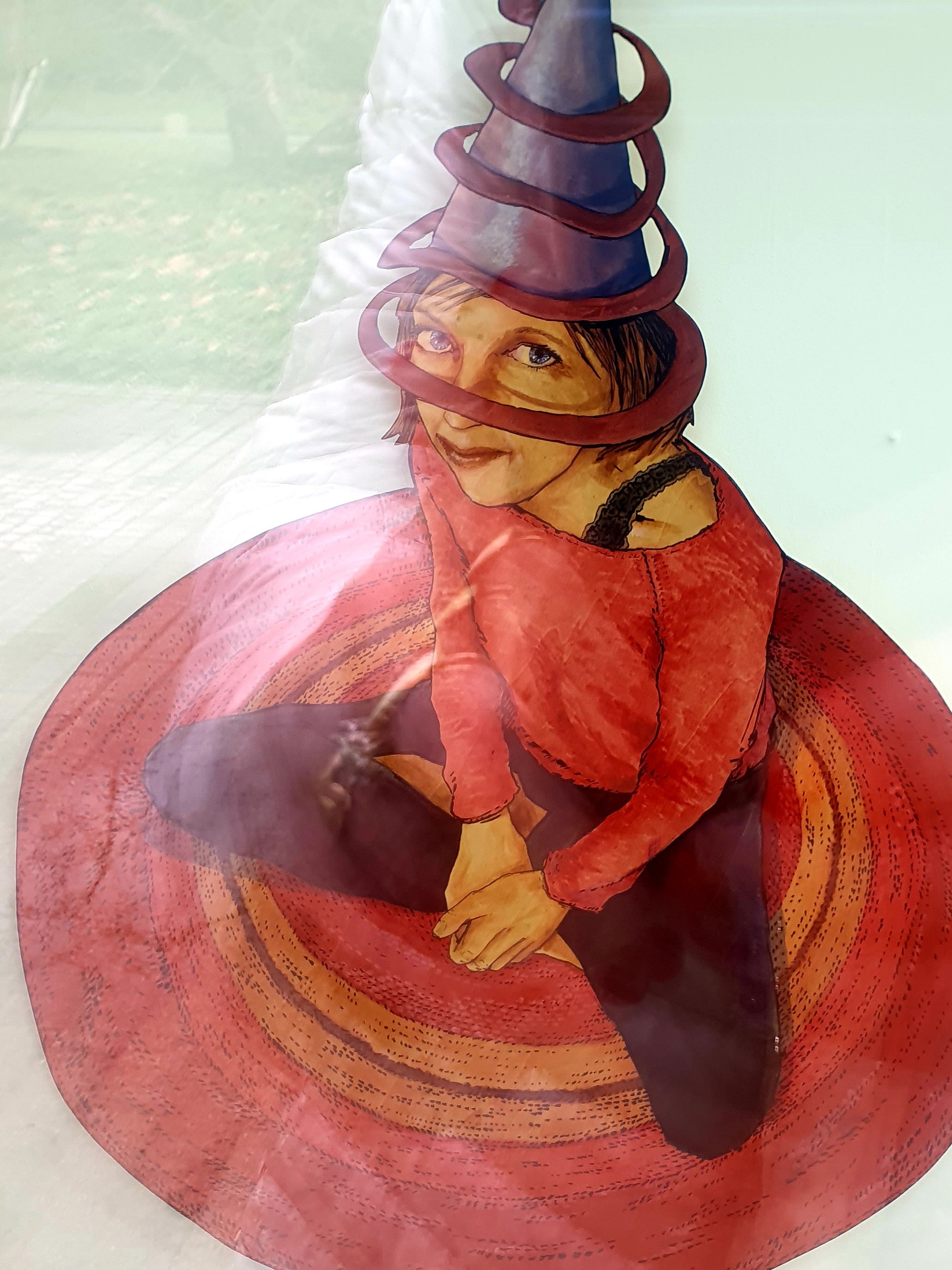 In der tiny hall (mobile Kunsthalle im Rombergpark, nicht begehbar, aber mit – leider spiegelnden – Schaufenstern) werden zur Zeit Ergebnisse des städtischen Kunsteinkaufs gezeigt. Da die Namen nicht dabei stehen, war ich nur bei diesem Kunstwerk sicher (denn ich kenne nicht nur die spezifische „Handschrift“ bei Portraits des Künstlers, sondern auch die Portraitierte): das ist ein echter Peter Kröker