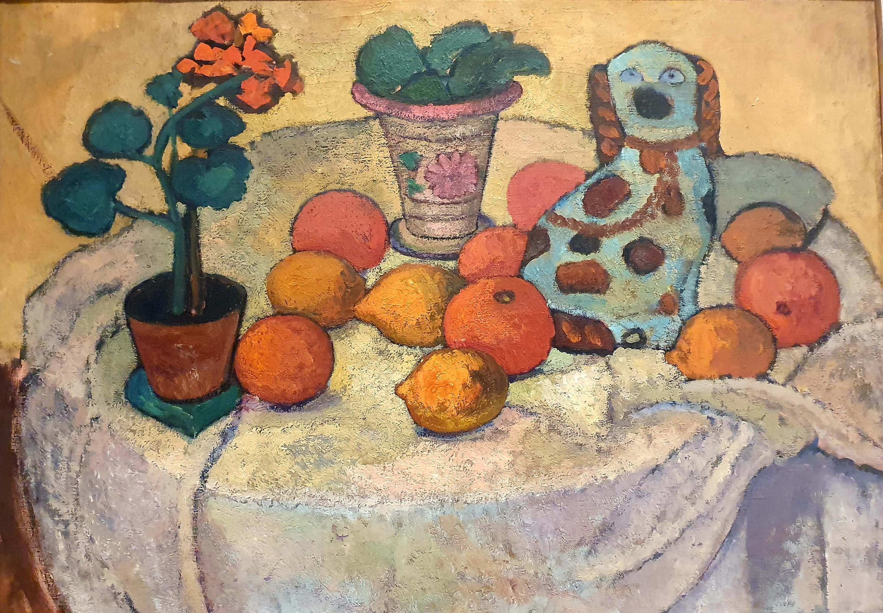 Paula Modersohn-Becker (1876-1907), Stillleben mit Orangen und Fayencehund 1906/07. Sie hätte heute ihren 145. Geburtstag gehabt (eine typische WassermannNatur, die eigenwillig in ihrer Farb- und Formengebung war und die Kunst über ihr Familienleben stellte. Tragisch, dass sie so früh nach der Geburt ihrer Tochter starb. Dieses Bild fotografierte ich im September 2020 im Oldenburger Prinzenpalais.