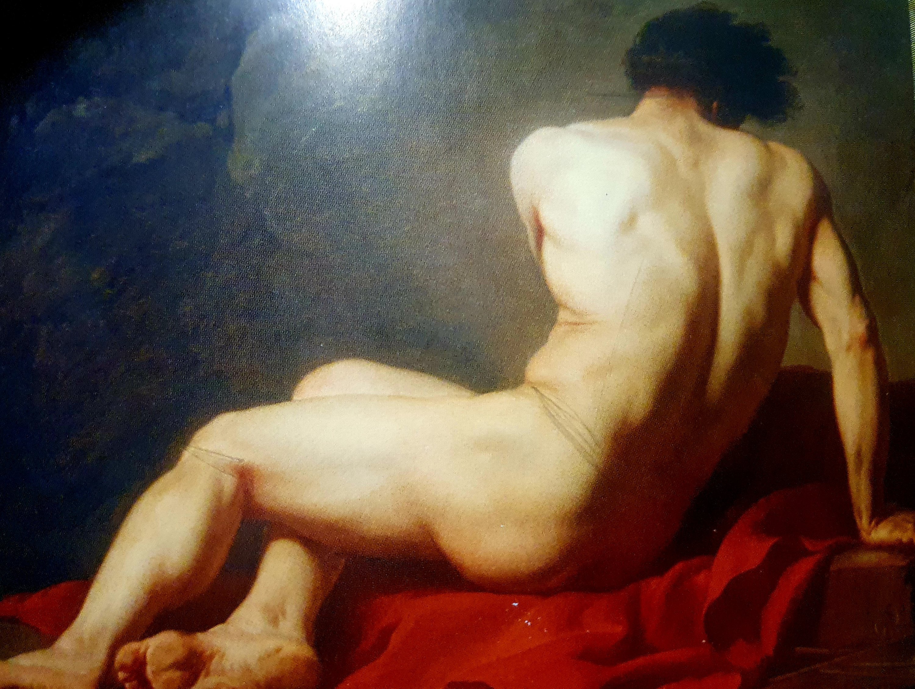 JACQUES LOUIS DAVID (1748-1825) mit „Patroklos“(1780), der einerseits in seinen Akten (für die er neben historischen Gemälden berühmt ist) durch die alte italienische Malerei geprägt wurde und andererseits spätere Historienmaler wie Alexandre Cabanel aus Montpellier beeinflusste. Beide Künstler habe ich zunächst im Marseiller Schlossmuseum und im wundervoll vielseitigen Musée Fabre kennengelernt. Dieser Akt jedoch hängt im Original in Cherbourg, und ich bin durch ein hübsches Geburtstagsgeschenk (die Postkartensammlung „Männerakte“) darauf gestoßen. Ich nehme übrigens eine Gepflogenheit auf, die ich auch in den vergangenen Jahren schon versucht habe, die durch neues FotoMaterial aus immer neuen Museumsbesuchen allerdings nicht durchgehalten werden konnte: immer am 11. jedes Monats einen schönen männlichen Akt zu zeigen – sie sind viel seltener als weibliche Akte zu finden😉.