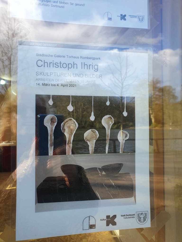 12. März 202112. März 2021 I sometimes love black and white Christoph Ihrigs spezielle Formensprache habe ich gestern auf dem Weg durch den Rombergpark schon von weitem erkannt…ein highlight für die tiny hall, in deren Schaufenster sich die Besucher spiegeln Teilen mit: Auf X teilen (Wird in neuem Fenster geöffnet) X Auf Facebook teilen (Wird in neuem Fenster geöffnet) Facebook Gefällt mir Wird geladen … Veröffentlicht von yvonnenodaywithoutfinearts Oberstudienrätin für Englisch und Französisch im Ruhestand. Kunstschaffend und -begeistert und reisefreudig Zeige alle Beiträge von yvonnenodaywithoutfinearts