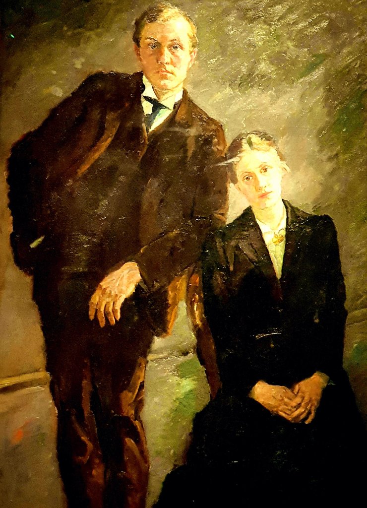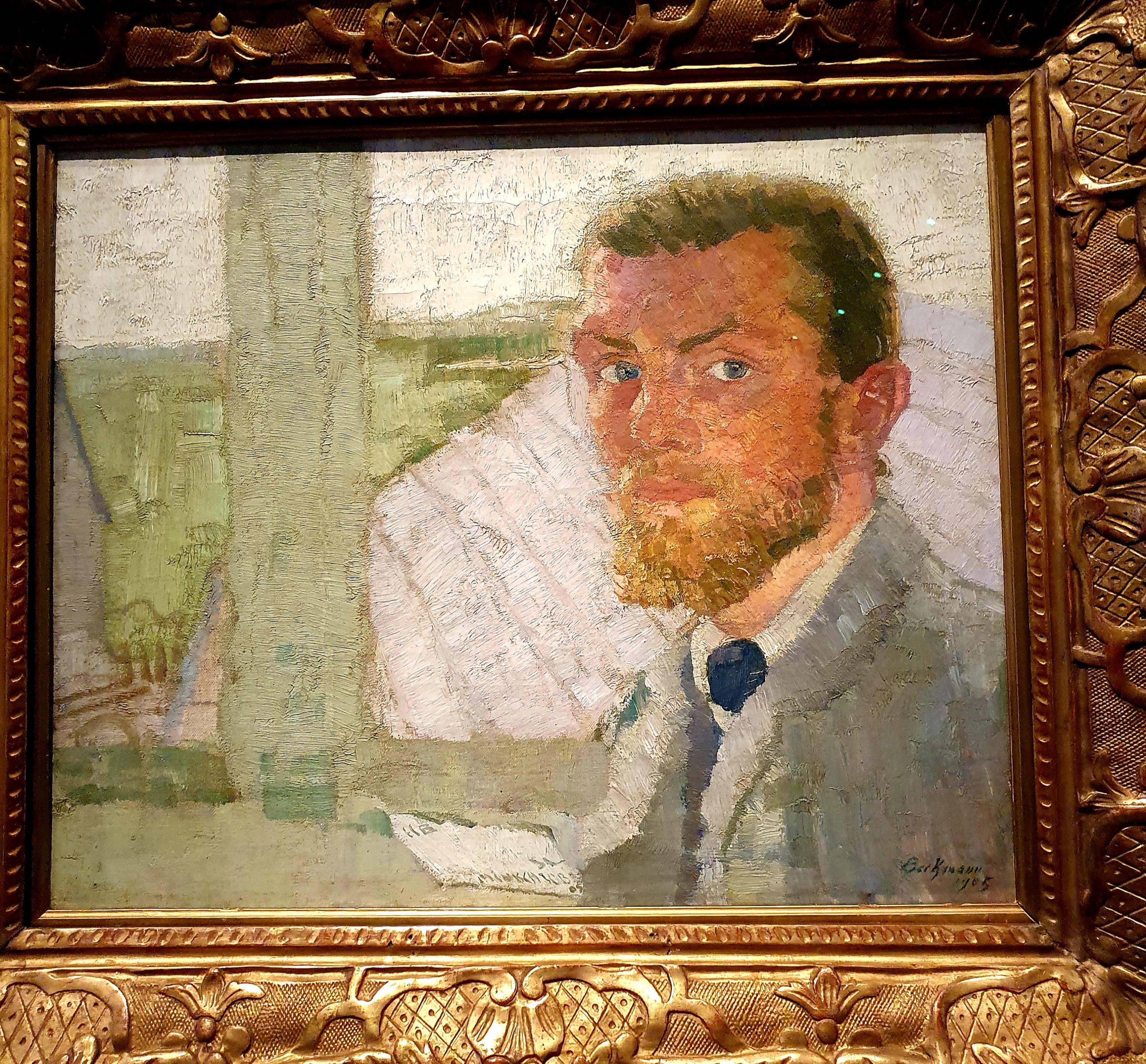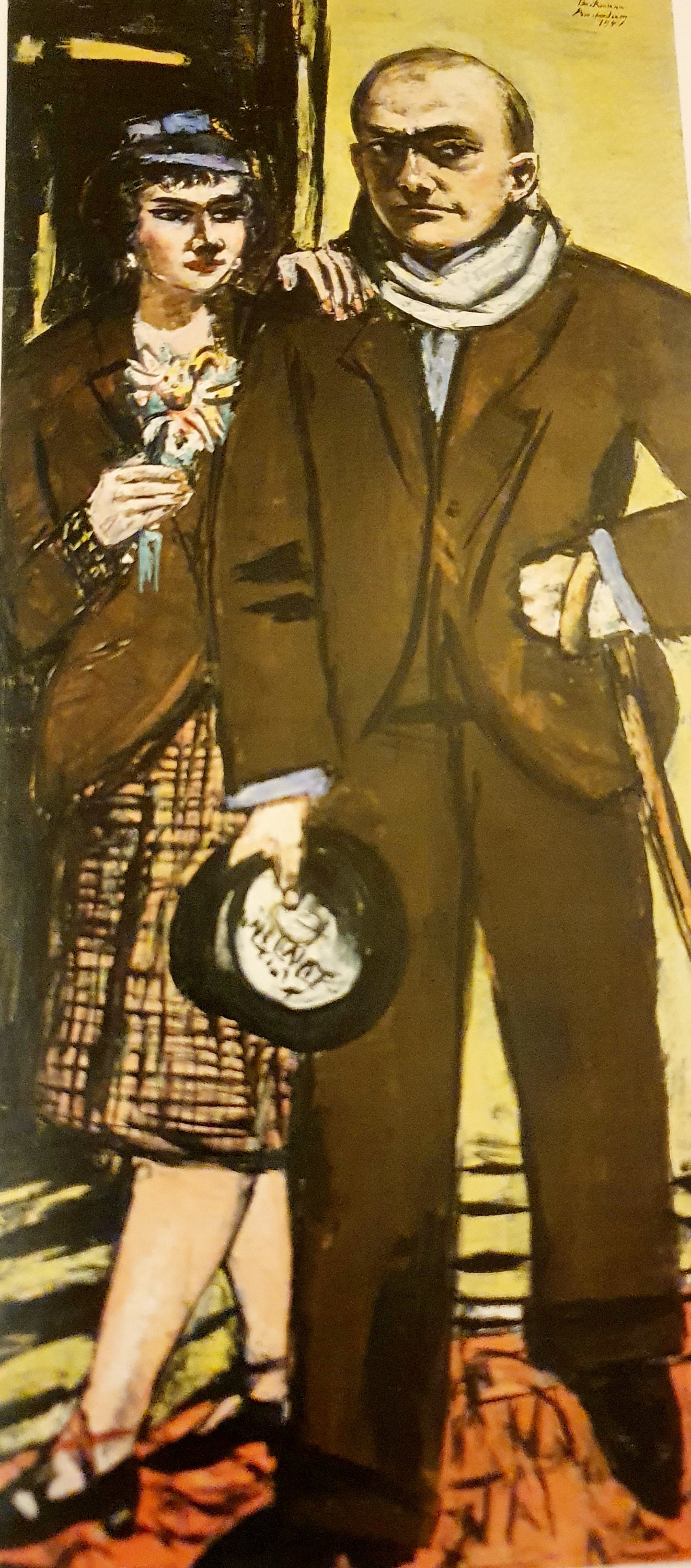 Beckmanns typische Doppelbildnisse mit seiner Ehefrau 1 (Minna) (1909) und Ehefrau 2 (Mathilde)(1941): beide waren hochbegabte Musikerinnen, die ihre eigene Karriere Max Beckmann zu Liebe aufgaben: wahrscheinlich auch manchmal Grund für Debatten…obwohl er seine Verbundenheit mit ihnen deutlich durch die körperliche Berührung auf dem Bild zeigt. Zum anderen zwei von vielen Selbstportraits, die auch in der Ausstellung in Hamburg zu sehen waren: das früheste von 1905 in eher impressionistischen Stil und das späteste, nicht lange vor seinem Tod im Alter von 66 Jahren aus dem Jahr 1950. Ich finde den Augenauadruck von beiden Selbstportraits ähnlich: suchend und den Blick nach innen gerichtet. Die Fotos wurden z. Teil in der Ausstellung und zum Teil aus dem Katalog genommen.