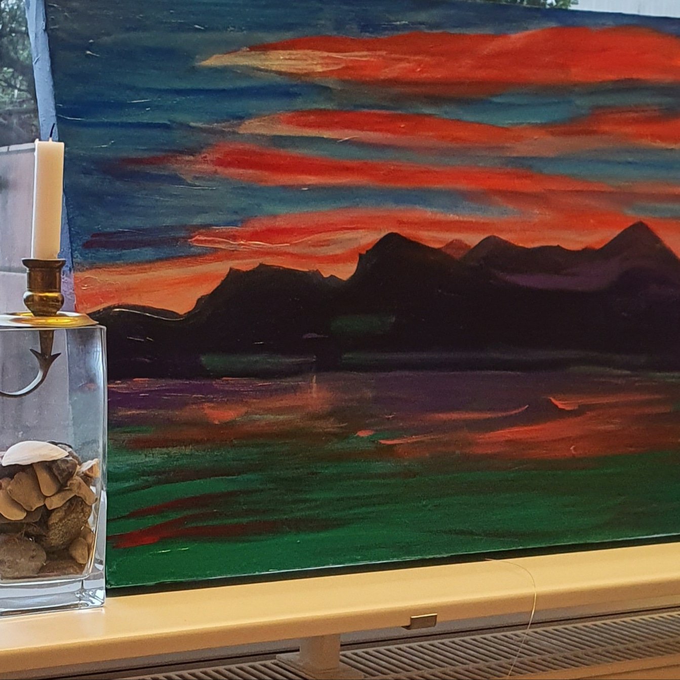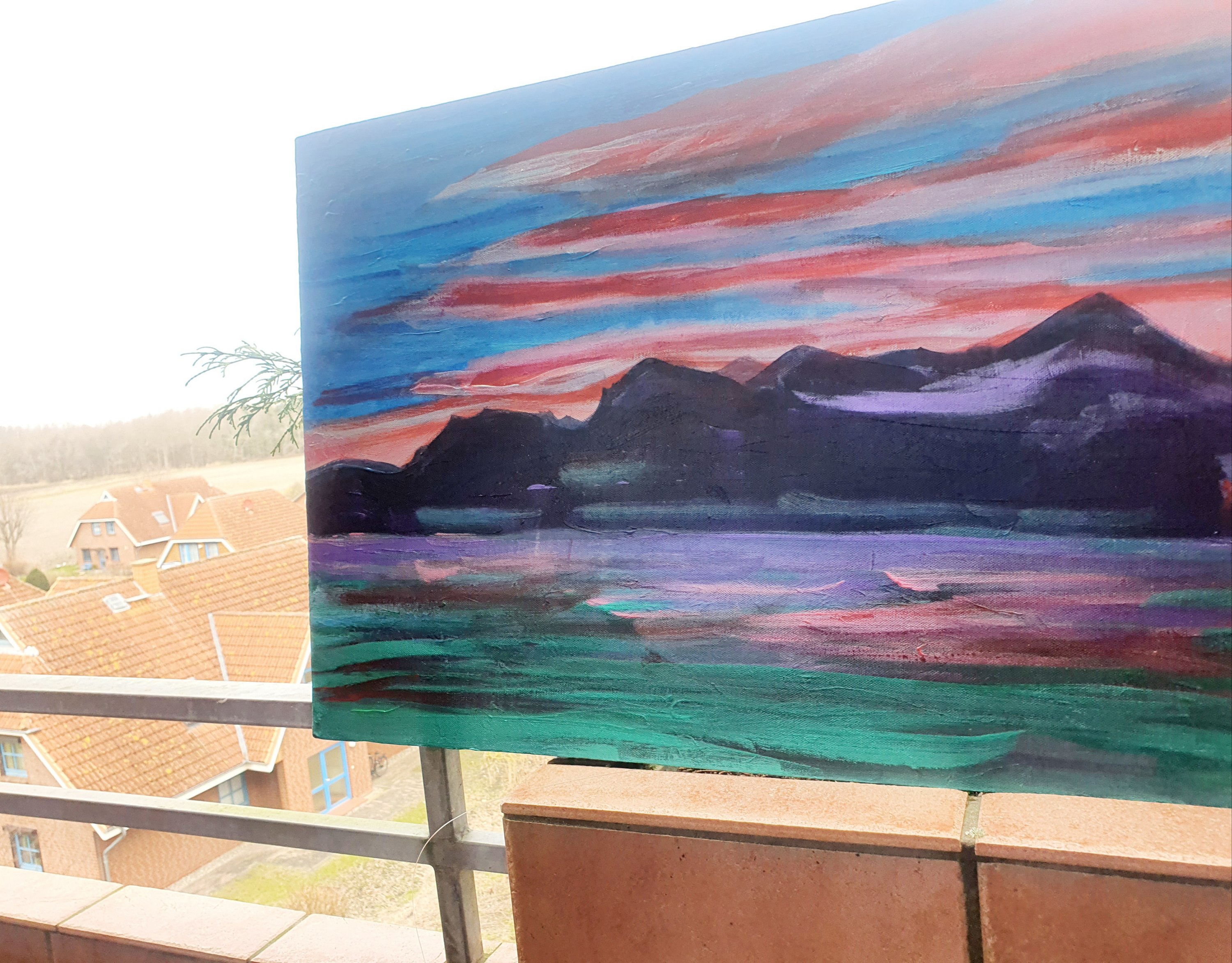 Die Winterausstellung in der Dahmer Kunstmeile in der Lübecker Bucht geht dem Ende zu, und daher habe ich 3 meiner Yvonne-Wilken- Paintings abgeholt (bis auf 3, die bleiben). Amüsant, dass auch das Tessiner Abendrot unter nördlichem Himmel sich gut macht.