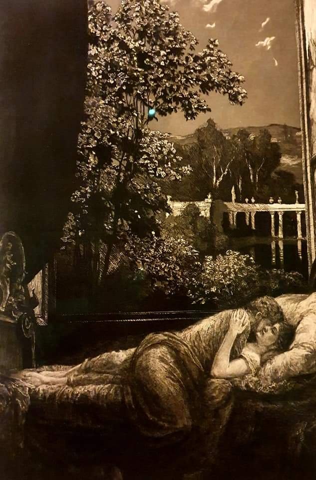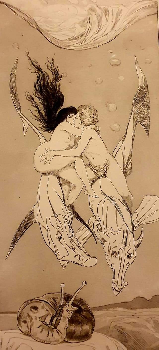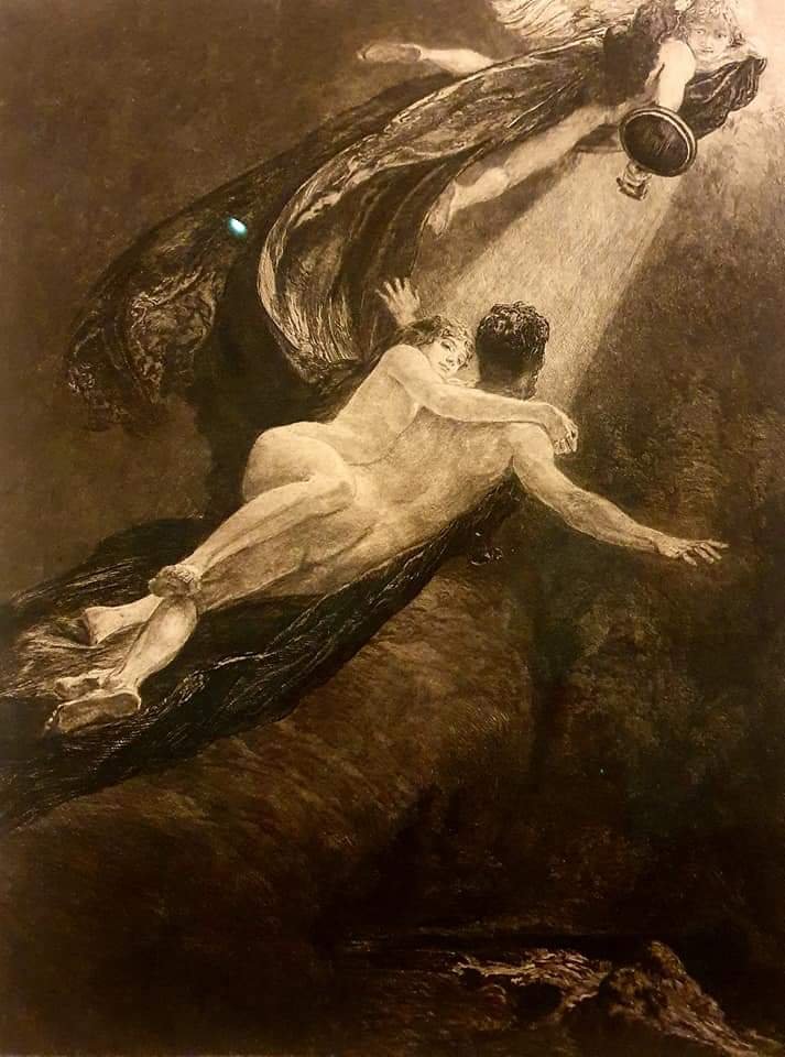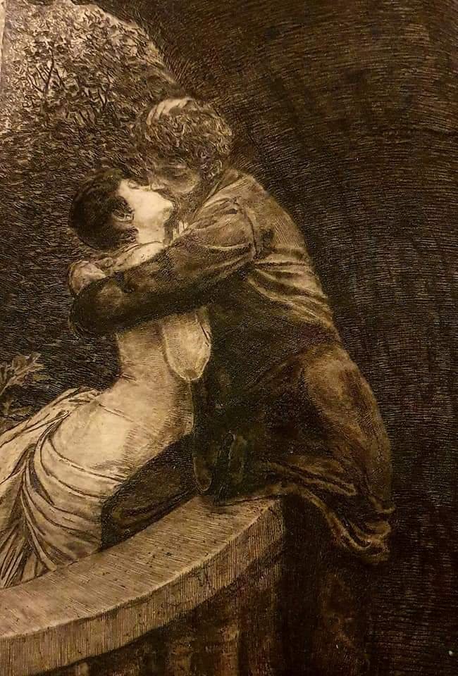 Im Zusammenhang mit Giorgio de Chirico wurden in der Hamburger Kunsthalle auch Radierungen und Stiche von Max Klinger und Arnold Böcklin gezeigt. Das Werk beider als Vorbereiter des Symbolismus war Inspiration für de Chirico, der Leipziger Maler und Bildhauer Max Klinger, dessen 100. Todestag im letzten Jahr in mehreren Ausstellungen begangen wurde, widmete seinerseits Böcklin über Jahre hinweg einen Zyklus von Radierungen, die er mit „eine Liebe“ betitelte. In den Untertiteln heißen sie „Glück“ (1903), „im Park“ (1887), „neue Träume vom Glück“ (1896) und „Verführung“ (1880), letzteres wohl nicht aus dem Zyklus.