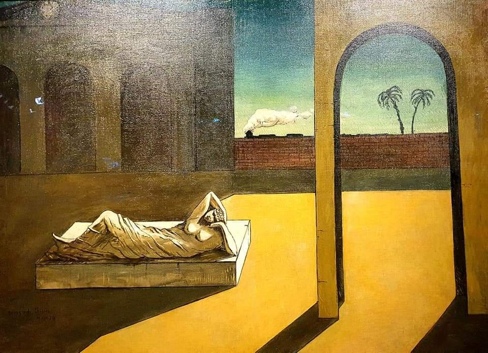 Giorgio de Chiricos mehrfach auftauchende gemalte Skulptur „Ariadne“ stammt aus den Monaten Juni/Juli 1913. Das Gemälde trägt den rätselhaften Titel “ der Lohn des Wahrsagers“. Ein Portrait seiner Ehefrau habe ich bisher vergebens gesucht…