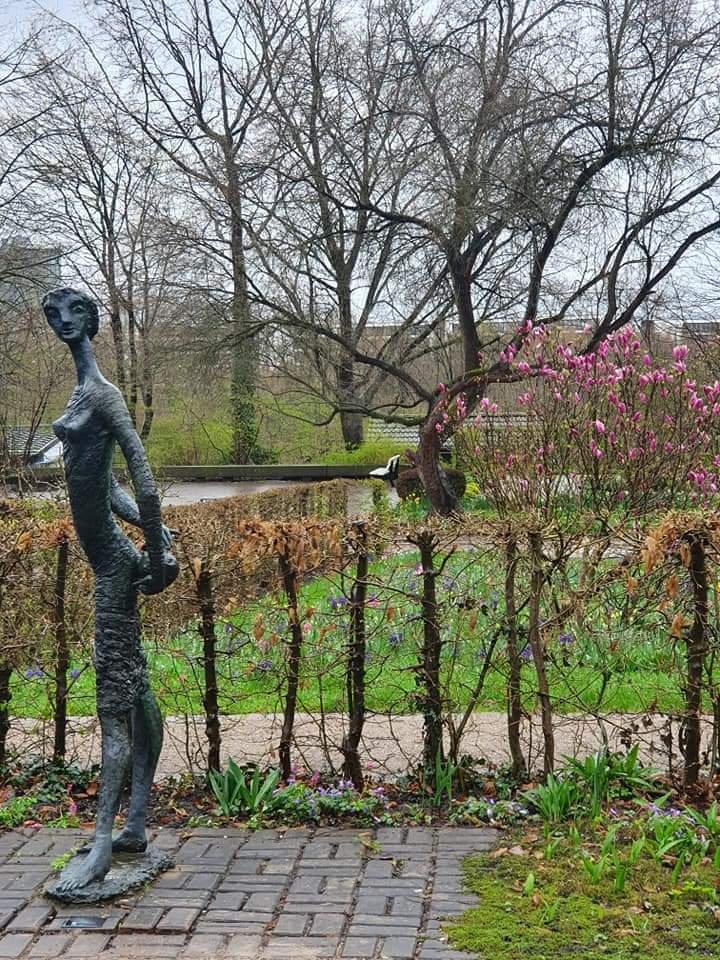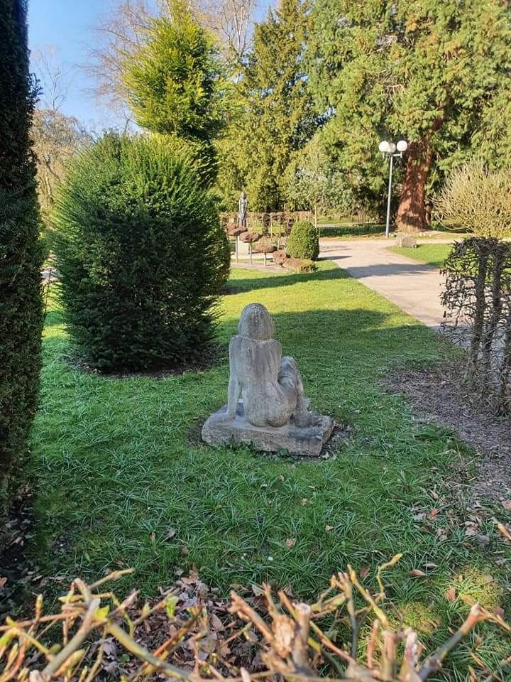 ALMUT LÜTKENHAUS, Mädchen mit Ball (Bronze) and Prof.AUGUST KRANZ, Still allein, Nymphe (Marmor, 1930) – an den beiden führten meine kleinen Spaziergänge rund ums Torfhaus immer vorbei, und ich bedachte sie mit liebevollen Blicken, begrüßte sie wie alte Freundinnen, wenn ich morgens ankam.