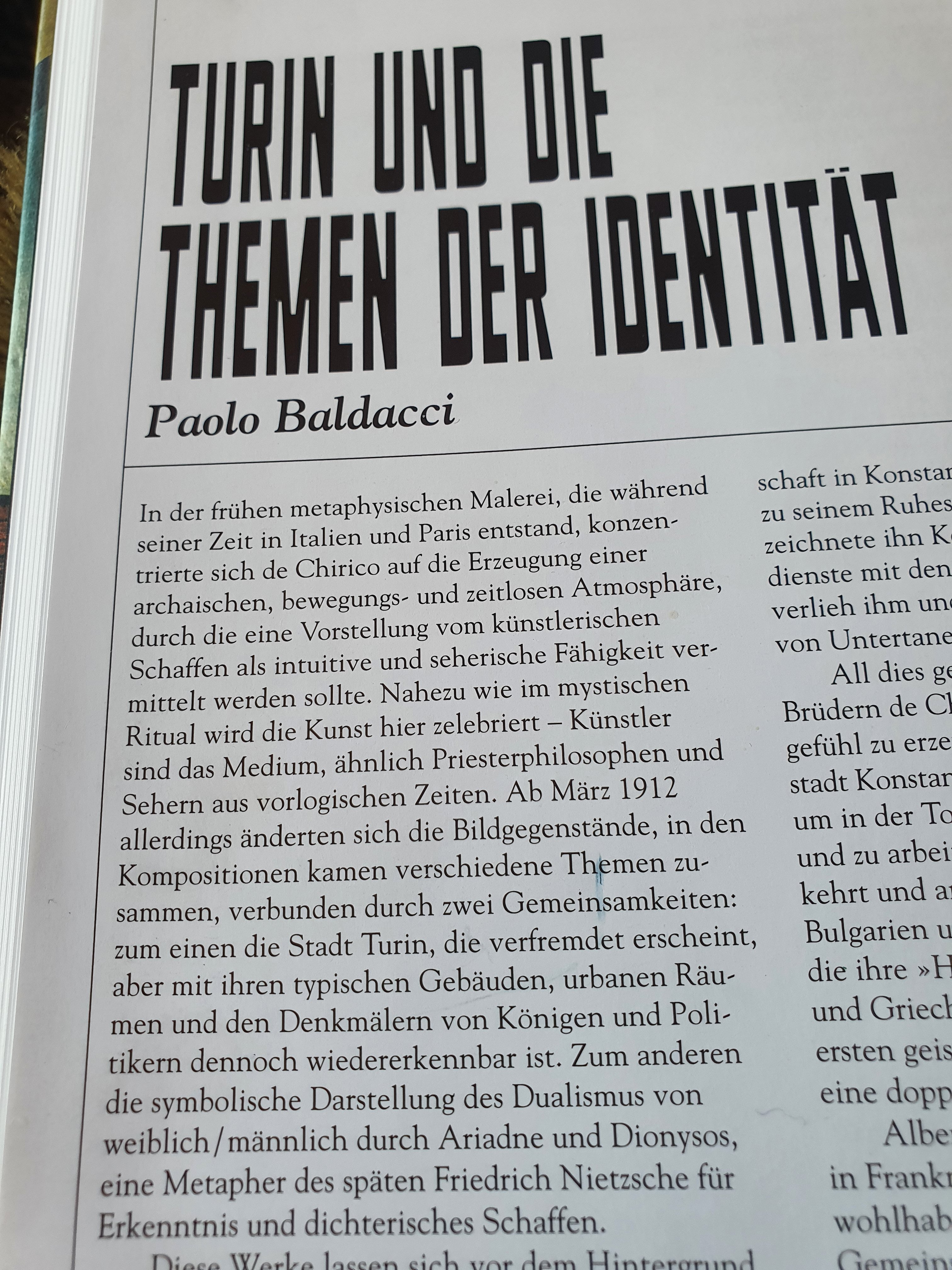 Die Stadt, die de Chirico immer wieder und wieder gemalt hat, ist also Turin. Und auch die Ariadne, die ich als Namen in meiner Hommage übernommen habe, kommt hier als echte und gemalte Skulptur vor.