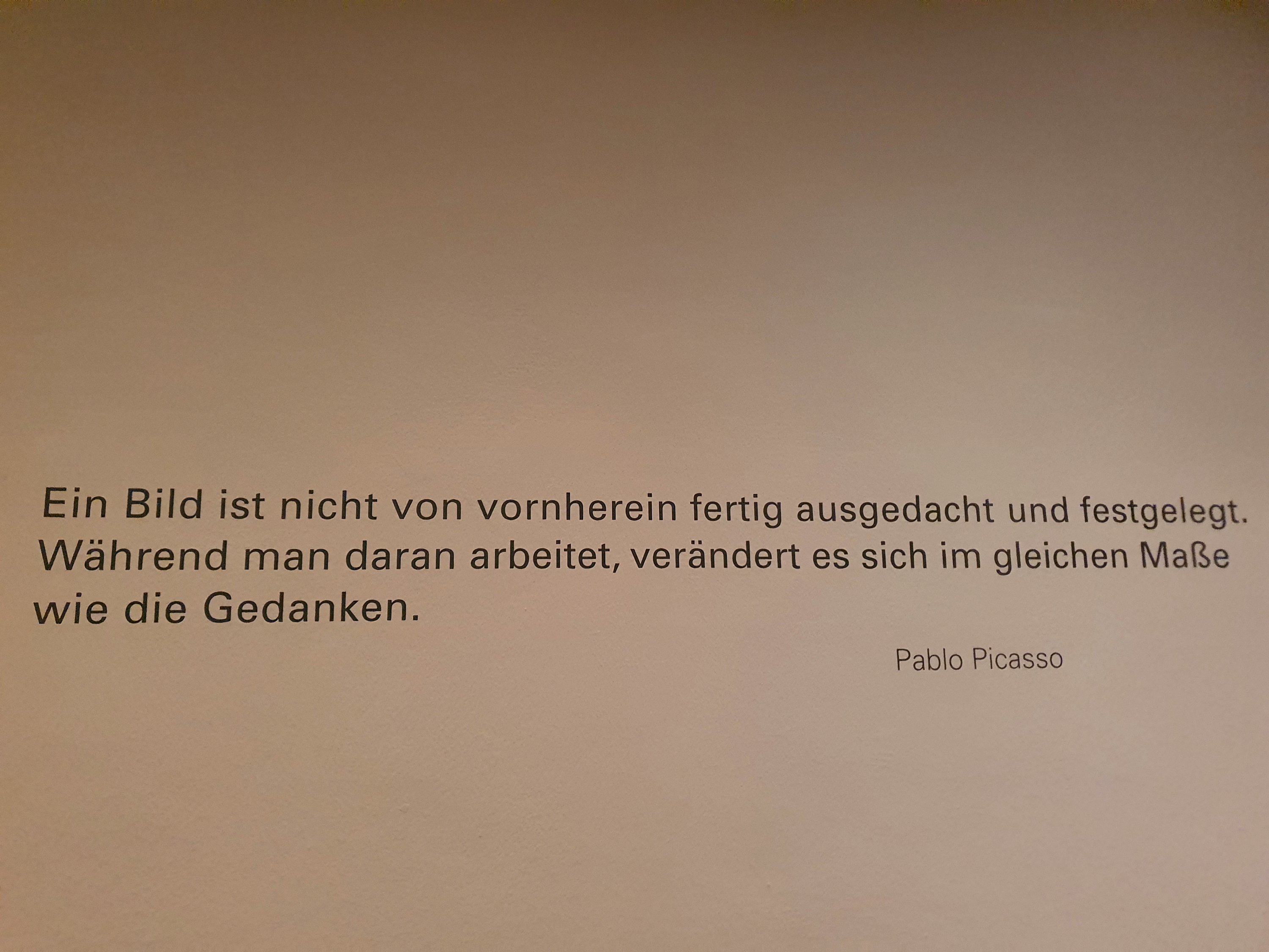 19. Mai 202119. Mai 2021 Art Quotation (156) by Pablo Picasso @ Picasso Museum Münster „work in progress“….und es stimmt! Teilen mit: Auf X teilen (Wird in neuem Fenster geöffnet) X Auf Facebook teilen (Wird in neuem Fenster geöffnet) Facebook Gefällt mir Wird geladen … Veröffentlicht von yvonnenodaywithoutfinearts Oberstudienrätin für Englisch und Französisch im Ruhestand. Kunstschaffend und -begeistert und reisefreudig Zeige alle Beiträge von yvonnenodaywithoutfinearts