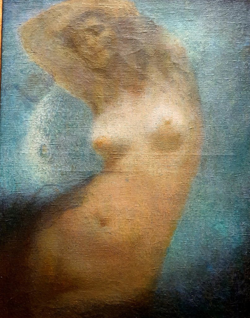 Lucien Lévy-Dhurmer, 1925, Mondscheinsonate – in für den französischen Symbolismus- und Jugendstilkünstler typischer Anspielung auf Musik, gesehen in der Bremer Kunsthalle