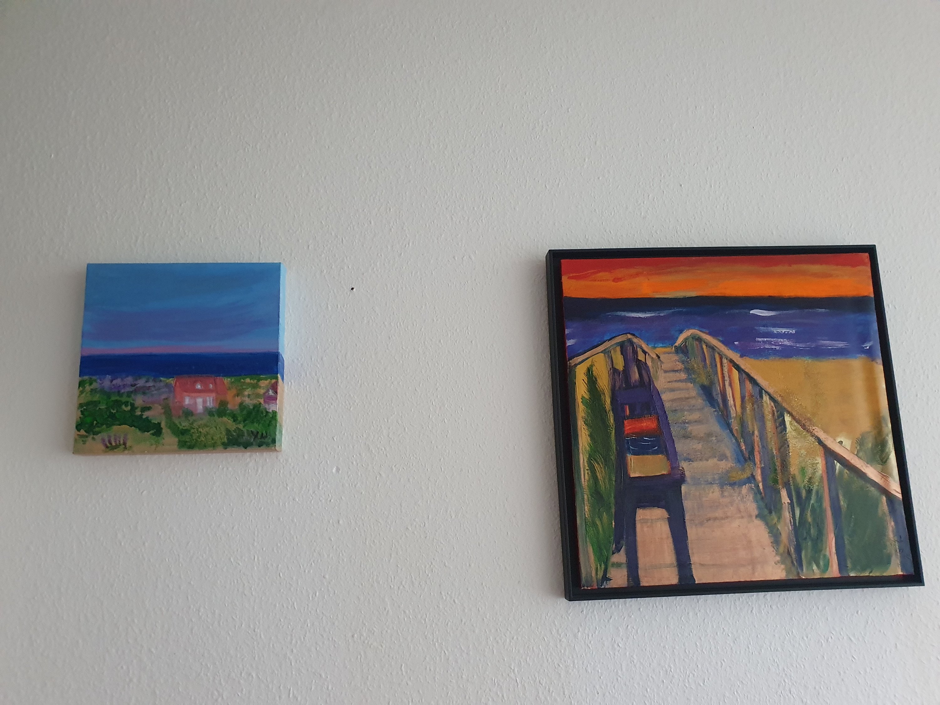 Yvonne Wilken paintings in my cousin’s private collection: Baltic Sea 1 (25×25, „view“, 2019) Baltic Sea 2 (40×40, „the lilac easel“, 2018 – mixed media: acrylic+real sand from the Baltic Sea)