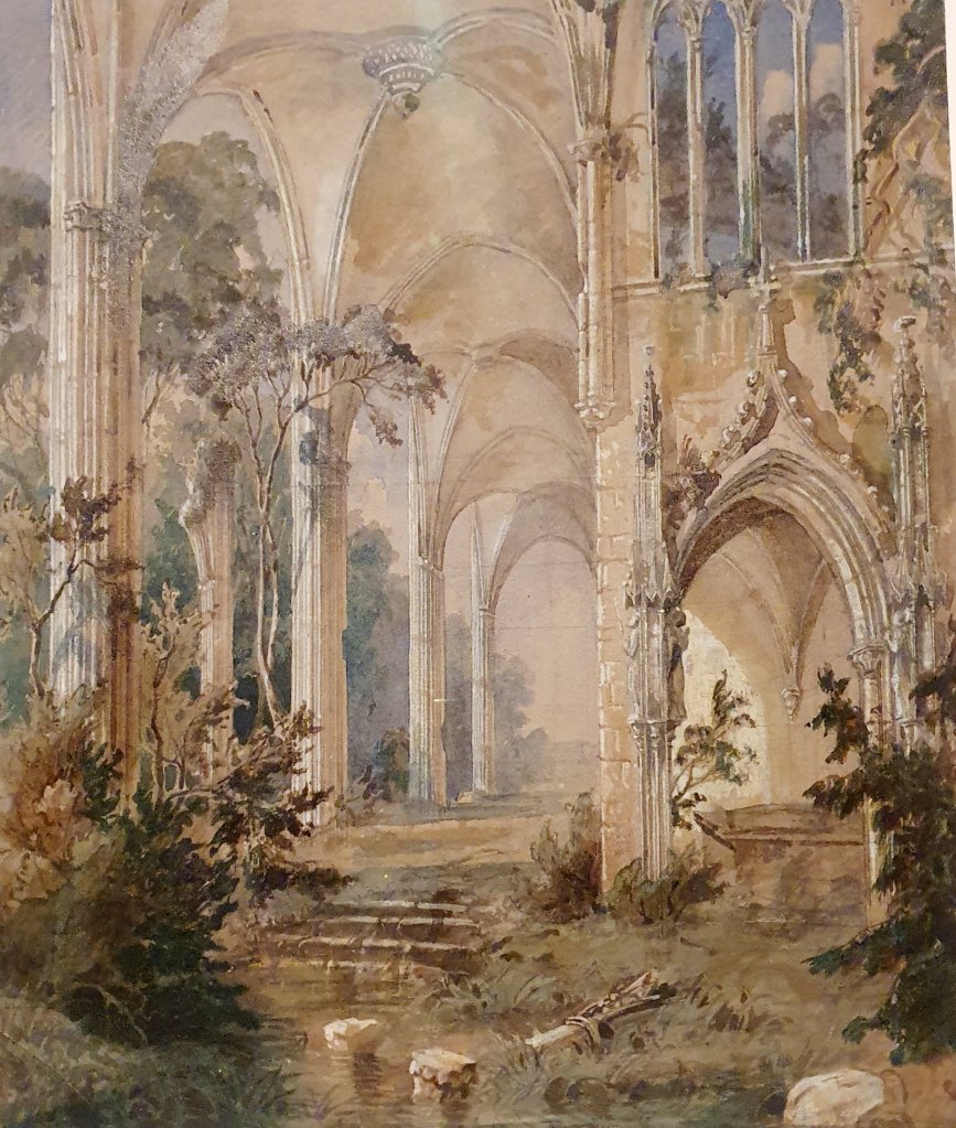 Die „Gotische Kirchenansicht“ vom am 29. Juli geborenen Carl Blechen mit ihrer atmosphärischen Dichte wurde zwischen 1829 und 1831 gemalt und im April 2021 im Düsseldorfer Kunstpalast anlässlich der Ausstellung der Rheinischen Romantiker gezeigt. Blechen stammte allerdings nicht aus dem Rheinland, sondern aus Cottbus und war Professor an der Berliner Akademie. Er war auch im Begriff, die Romantik durch Realismus zu überwinden (wenn auch die Kirchenansicht etwas geradezu Impressionistisches hat und er bei den späteren Impressionisten – z. B. Max Liebermann – hoch angesehen war). Leider starb er früh und konnte diese Hinwendung zu mehr Realismus nur im Ansatz realisieren.
