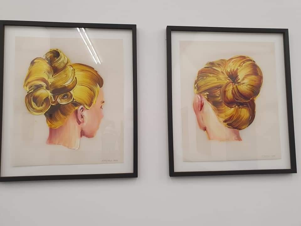 Cornelius Völker, Dutt. Öl auf Papier 2014 – in der Ausstellung zur Nationalbank Sammlung im Museum Küppersmühle in Duisburg – der 1965 geborene Künstler und Kunstprofessor lebt und arbeitet in Düsseldorf. Seine eher aus dem Alltag genommenen Motive werden mit hoher Präzision dargestellt, wie auch diese Serie von eigentlich 4 Dutts.