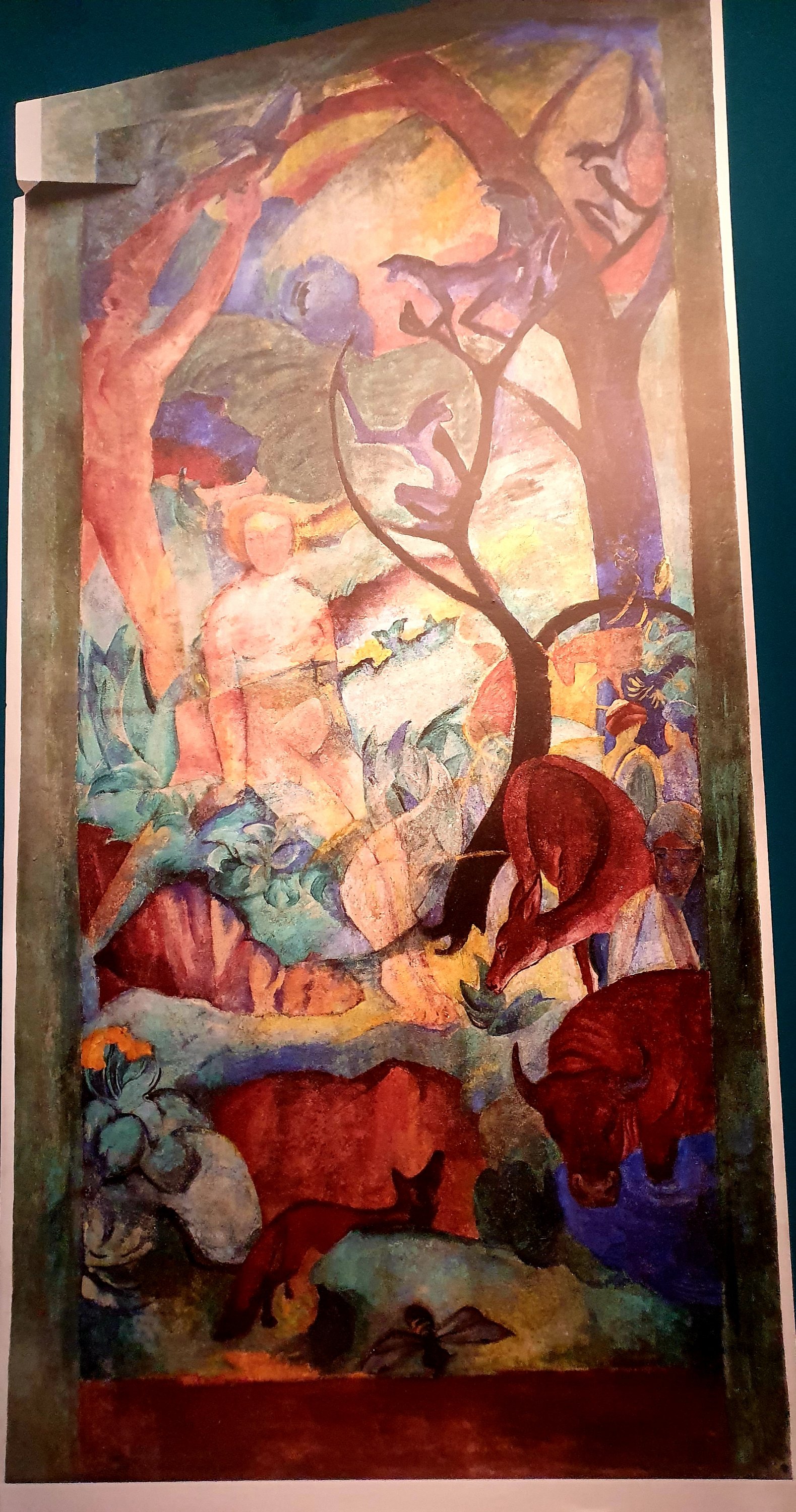 wunderschönes Gemeinschaftswerk von August Macke und Franz Marc aus dem Jahr 1912 – in der Ausstellung „August und Elisabeth Macke“ im LWL Museum Münster (in dem es eine Arbeitsteilung gab: Marc war für die Tiere zuständig und Macke für die Menschen dieses „Paradieses“.