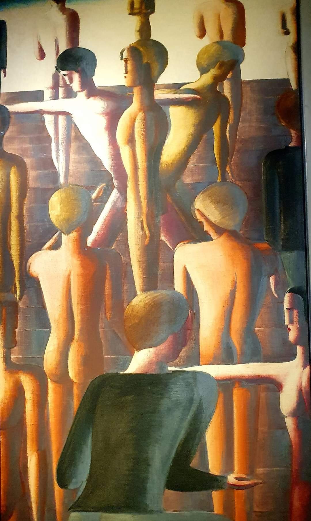 (-13.4.1943) mit seiner berühmten Fünfzehnergruppe von 1929, gesehen am 8.8.21 im Duisburger Lehmbruck Museum. Ich bin auf Oskar Schlemmer erst sehr spät aufmerksam geworden: 2016 in Weimar im alten Bauhaus Museum, 2018 in Duisburg und 2019 in Wuppertal im von der Heydt Museum. Aber seitdem habe ich mich wirklich in seine Bilder so verliebt, dass ich ihm eine Hommage gewidmet habe, in der ich Auszüge aus 4 verschiedenen Schlemmerbildern neu zusammenstelle zu einer ganz anderen Geschichte.
