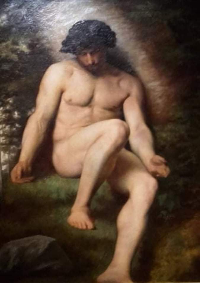 ALEXANDRE CABANEL (*28.9.1823 – 1889), den ich für seine poetisch-schönen Männerbildnisse schätze vom ersten Augenblick an, als ich einige im Musée Fabre in seiner Heimatstadt Montpellier sah – so auch dieses, das den Namen “ Adam, étude pour le Paradis Perdu“ trägt.