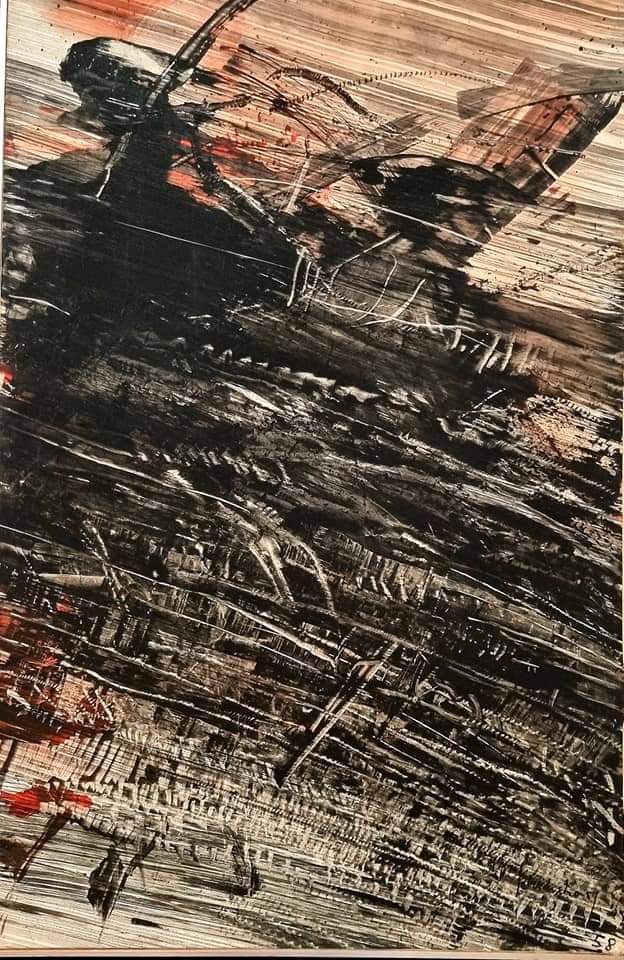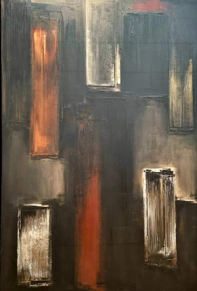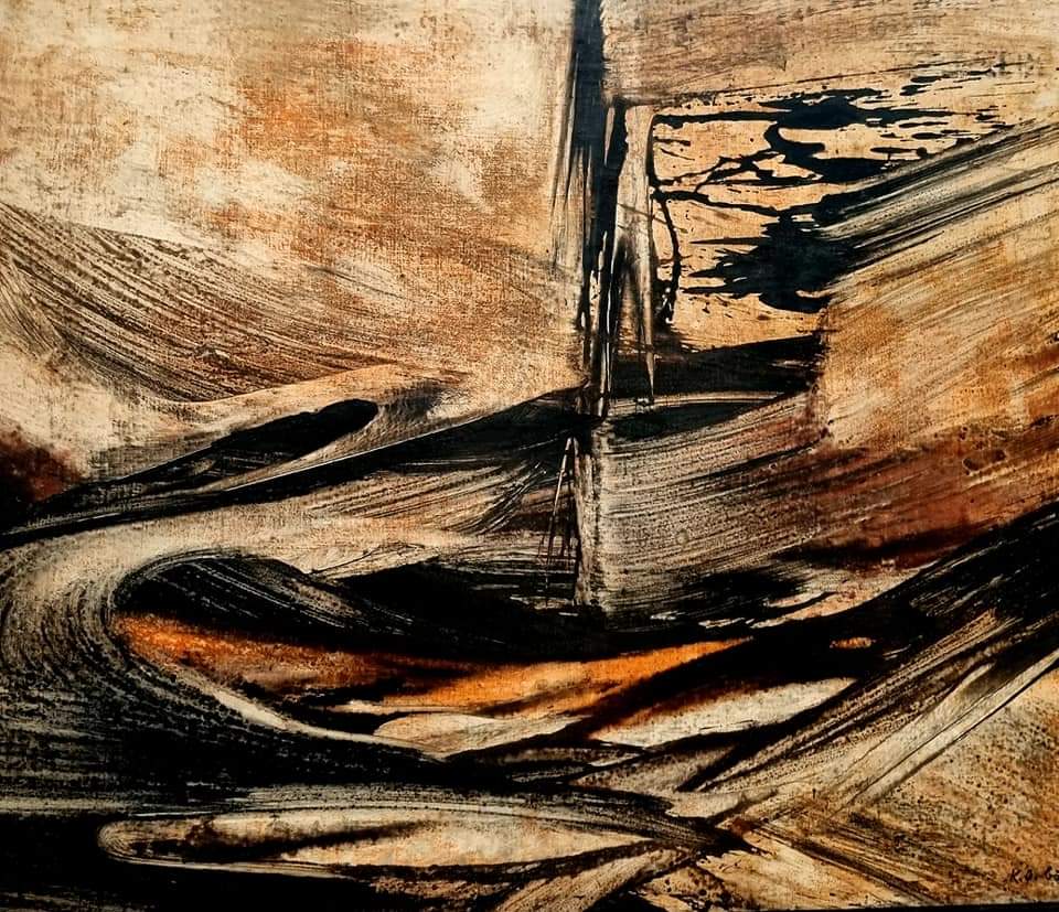by Hans Hartung (1955), Sonderborg (1958), Karl Otto Götz (1957) und dem zum Glück immer noch lebenden und arbeitenden Pierre Soulages (*1919) mit seinem Bild von 1955 – alle 4 in den eigentlich für mich wenig reizvollen Farben beige und braun in einem Raum zusammen im Folkwang Museum Essen, jedoch mit leichten Orangetönen und den Strukturen des Sujets wirken sie in ihrer Ähnlichkeit wunderschön…