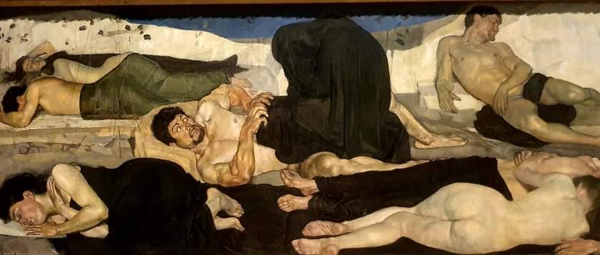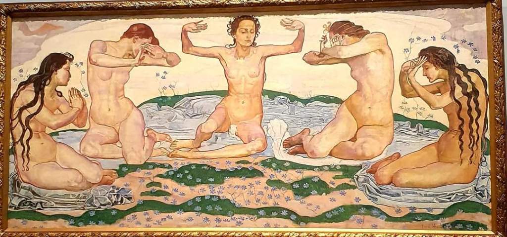 Ferdinand Hodler @ Berlinische Galerie. (YvonneWilkenPhotography 9/2021) Beide Bilder („der Tag“ aus den Jahren 1899/1900 und „die Nacht“ 10 Jahre früher 1889/1890) waren durch ihre Größe (wandgroß) und den Detailreichtum vor allem im Nachtbild, das außerdem durch den Skandal, das es entfachte, Hodler bekannt machte, waren für mich die Highlights der Berliner Hodler-Ausstellung.