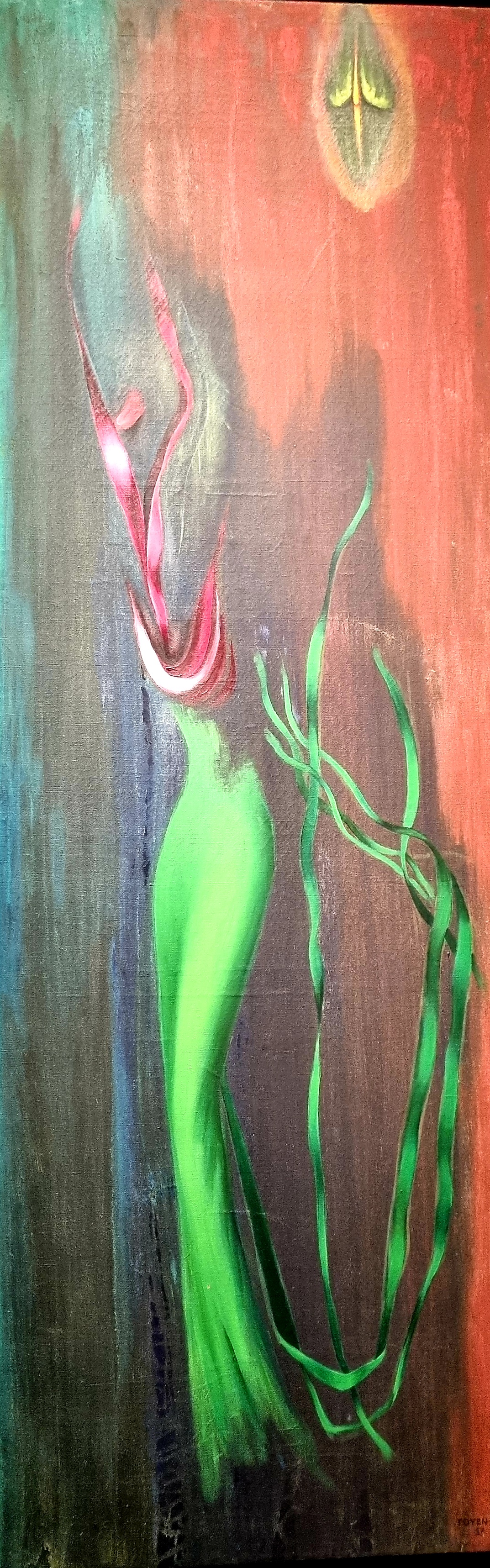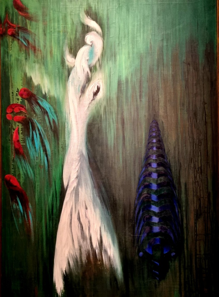 Wie auch schon der „Paravent“ von 1966, den ich zu ihrem Geburtstag am 21.9. präsentierte, da ich das Bild schon im März 2020 in der Schirn Kunsthalle in Frankfurt gesehen hatte – alles Bilder, die durch ihre Rätselhaftigkeit und Farbenfreude eine langanhaltende Wirkung auf den Betrachter haben.