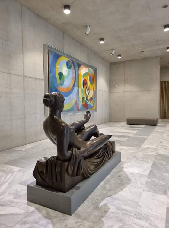 Es gibt noch einen #artistoftheday heute zu feiern, bzw. seiner zu gedenken, denn es ist der 80. Todestag des zu früh verstorbenen (mit 56 Jahren) französischen Künstlers der Avantgarde, ROBERT VICTOR FÉLIX DELAUNAY. Gestern im sensationellen (wegen des Interieurs und der hübschen Messingverarbeitungen innen), auch ein bisschen umstrittenen Chipperfield Neubau (wegen des etwas lieblosen Äußeren) dem Kunsthaus Zürich gegenüber – aber mit einem unterirdischen Gang verbunden – fiel mir zunächst einer meiner absoluten Lieblingsbildhauer auf (Aristide Maillol) und dann sein farbenfroher Hintergrund: ein sehr typischer Delaunay mit den „formes circulaires“ von 1930.