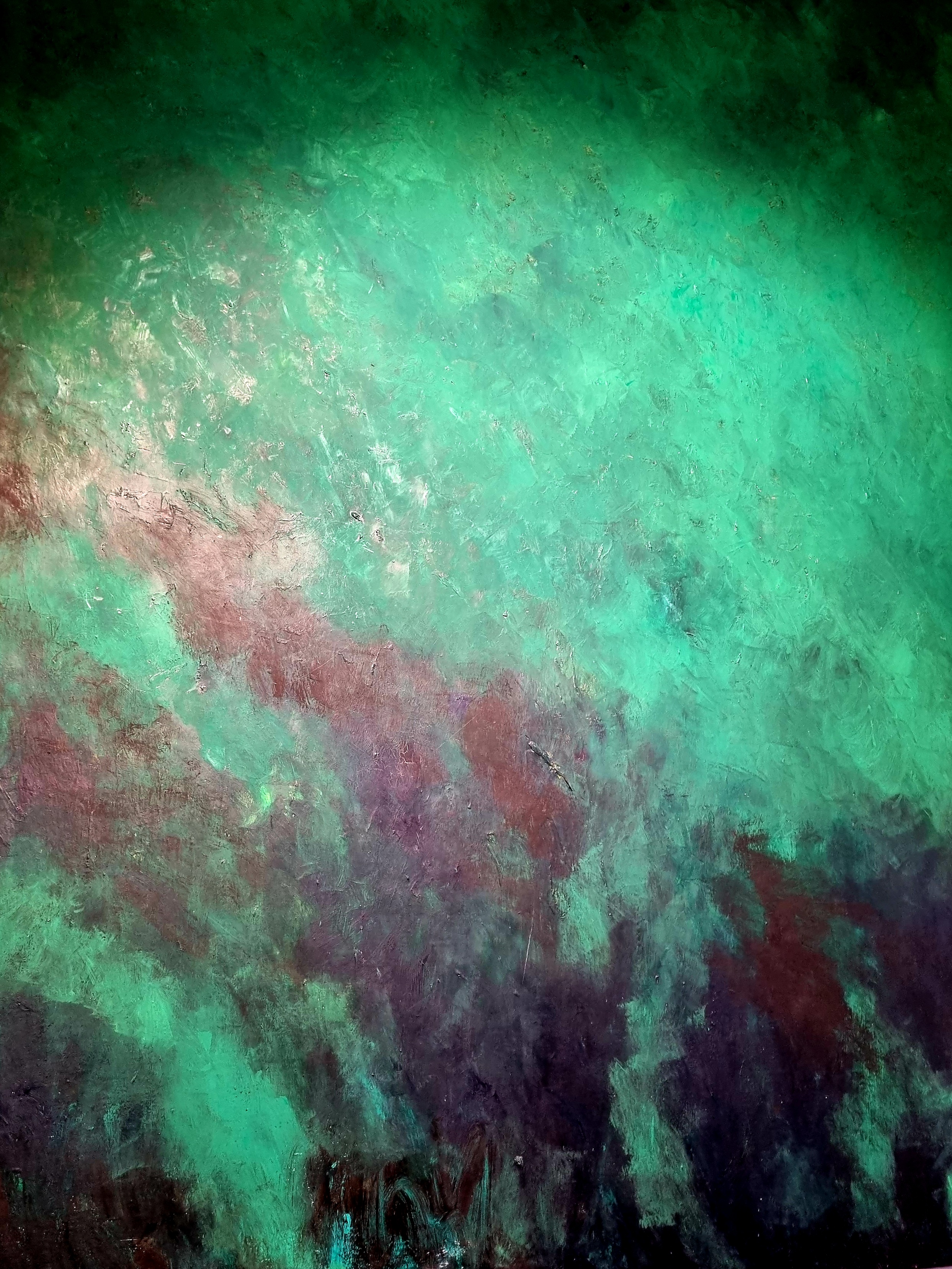 Ein großes abstraktes Bild, in dem man Geheimnisvolles entdecken kann, der deutsch-brasilianischen Künstlerin und Galeristin Marta von Zeidler in Berlin