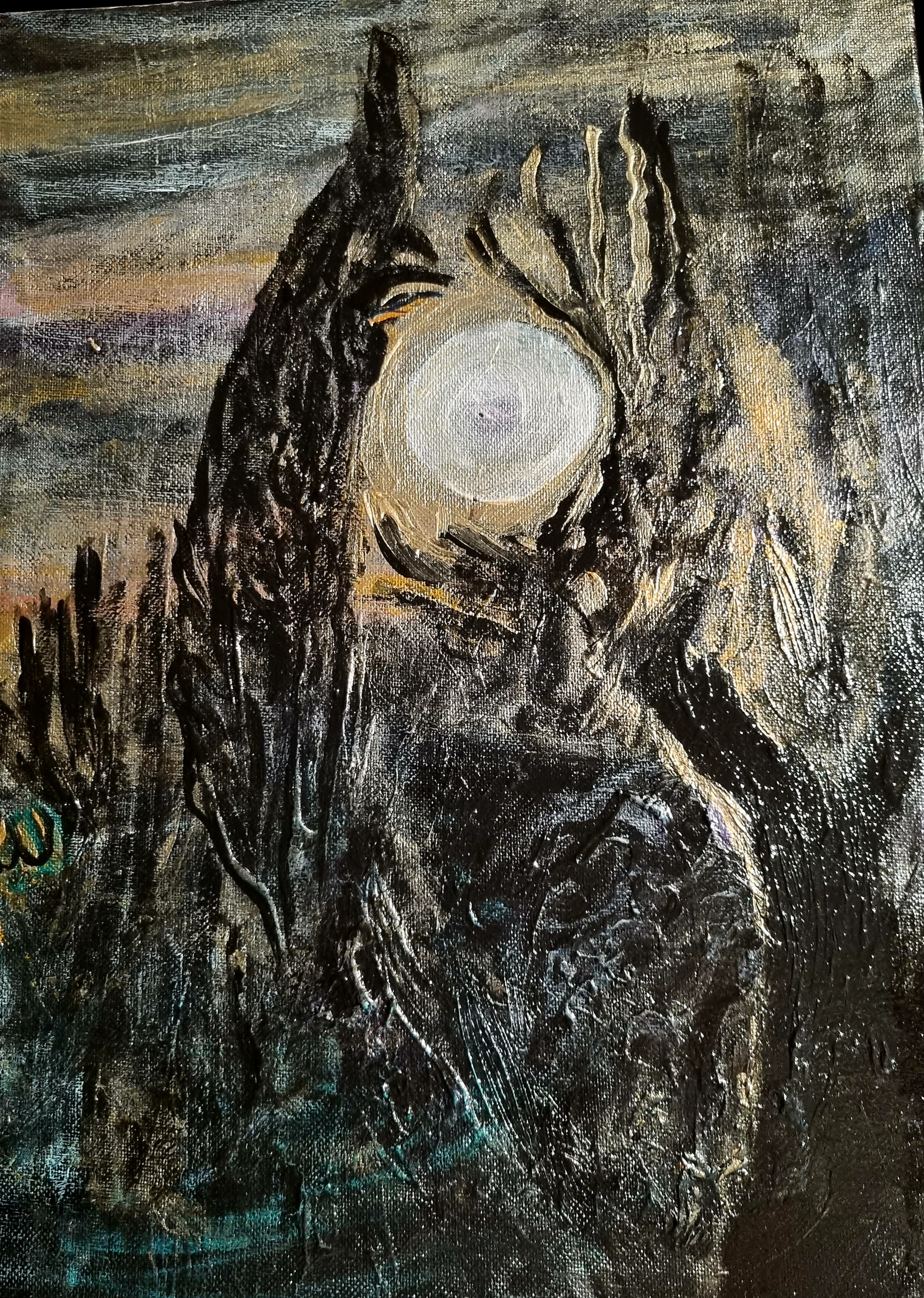 Mein yvonnewilkenpainting von 2019 „Full Moon“, Acryl auf Leinwand 30 x 40, gerahmt, leuchtet heute mit dem echten Vollmond um die Wette – bald leuchtet es in der Galerie von Kamilla Czastka in Witten, auf dem Schnee 29: save the date: vom 28.11.an – Adventsvernissage – von 15h bis 21h geöffnet (GG-Regelung) – meine Ausstellung wird bis 28.2. 2022 gehen❣