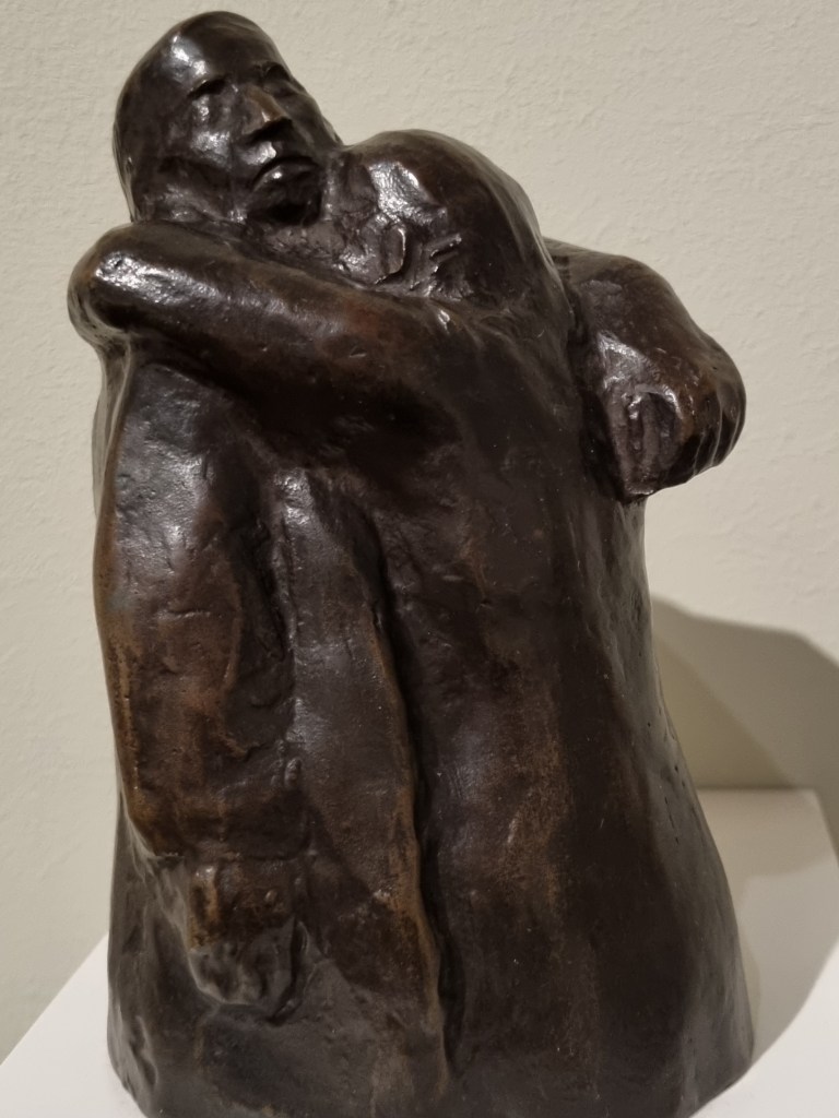 Welch trauriges, wenn auch kämpferisches Leben liegt zwischen diesen beiden Plastiken von Käthe Kollwitz – die erste, „Liebespaar“ betitelt, von 1913, die zweite – „Abschied“ – von 1940 nach dem Tod ihres Mannes entstanden. Viel früher hatte sie schon ihren Sohn verloren. Vorgestern gesehen im Käthe Kollwitz Museum in Berlin