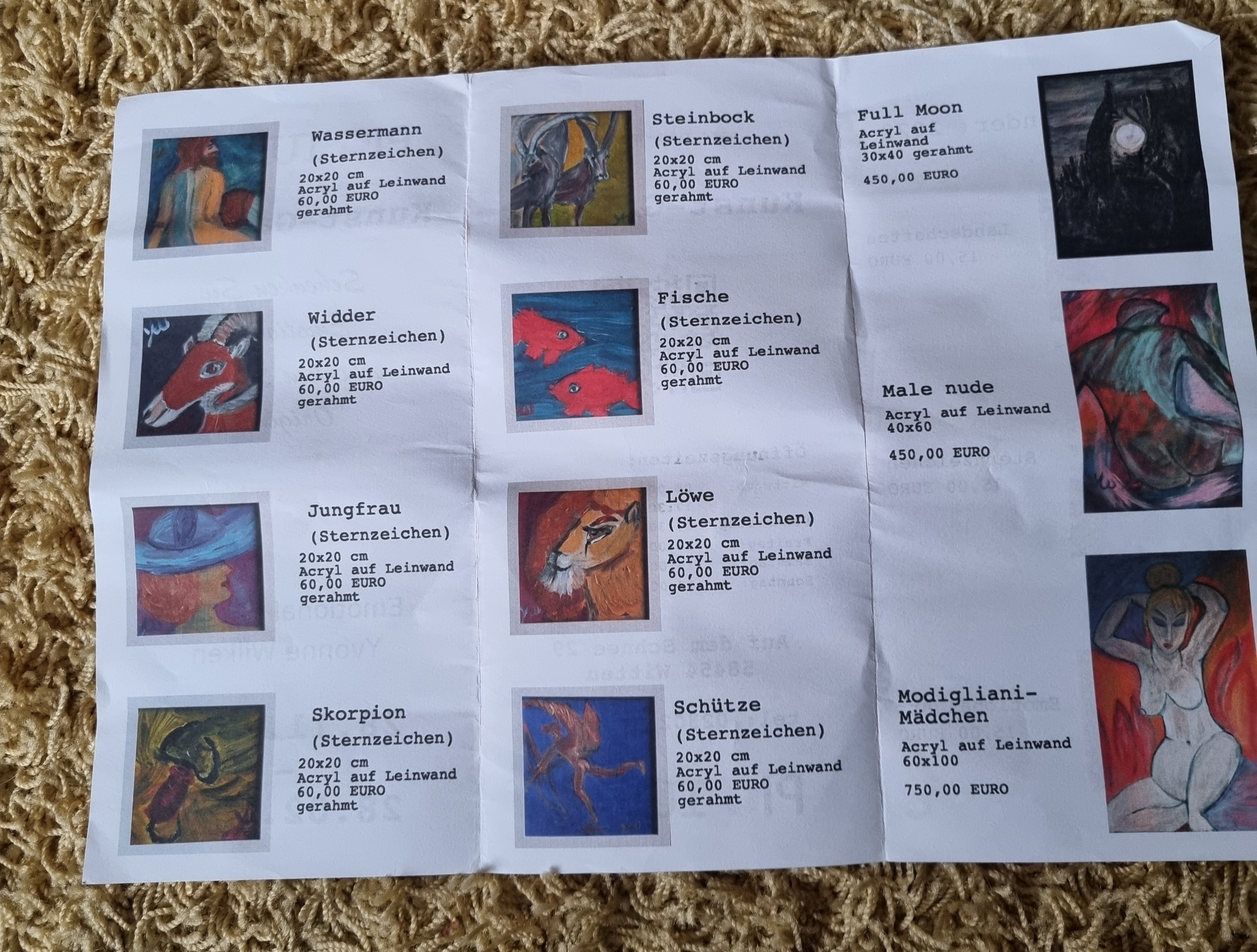 signs of the zodiac: it’s Capricorne Time: die Zeit der Steinböcke läuft jetzt. Dieses aktuelle Zodiac-Unikat (20×20, im Rahmen) STEINBOCK, findet sich zur Zeit unter vielen anderen #yvonnewilkenpaintings in der PIC-TURA Galerie auf dem Schnee 29 – wie es im Flyer steht. Am Sonntag in einer Woche (9.1.22) werde ich auch wieder dort sein. Bis dahin hält meine Galeristin Kamilla Czastka die Stellung und hat heute schon das „Sternbild des Dackels“ 😉🐶 (gleiches Format) verkauft.