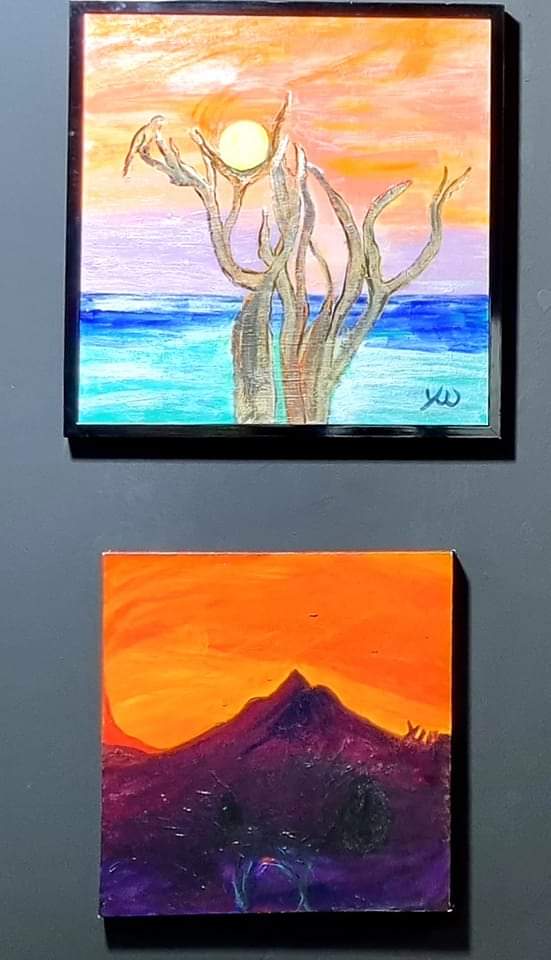 orangefarbene Himmel haben es mir ja von jeher angetan: in der neuen Ausstellung für Januar in der #wintergalerie Westenhellweg 86/88 in Dortmund finden sie sich auf der einen Seite: “ Korsischer Rotmilan“ und „magic mountain Oregon“ . Beide auch zu kaufen 😉😉