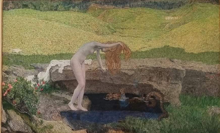 Geboren 15.1.1858 in Welschtirol: ein Künstler, der in seinem kurzen Leben durch mehrere Stile ging, bis zuletzt auch im Freien arbeitete und in seiner Spätphase (er starb 1899) sich dem Symbolismus widmete – hier mit einem Werk, betitelt „die Eitelkeit“ von 1897, gesehen im Zürcher Kunsthaus (Okt. 2021)