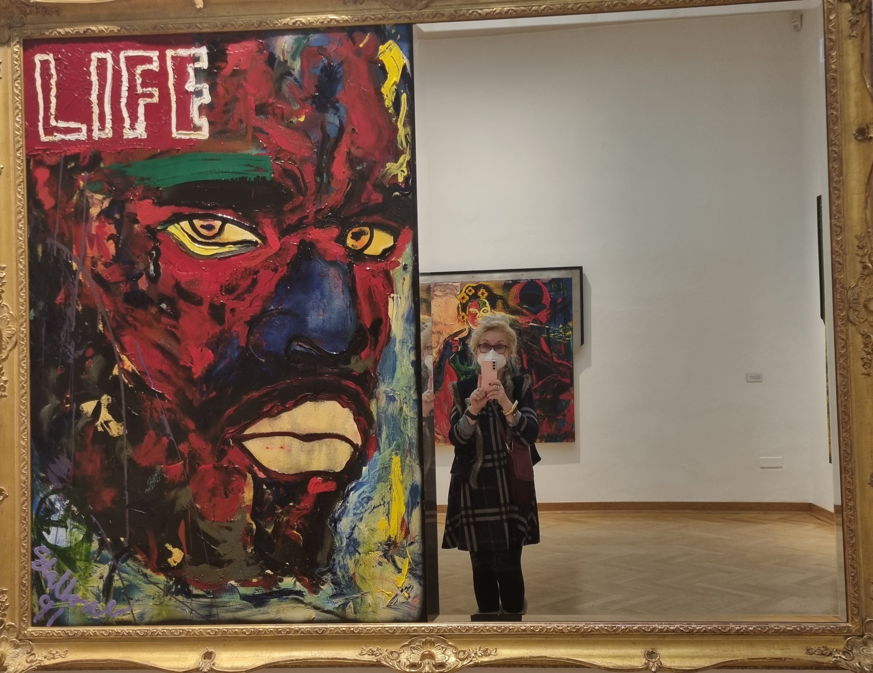 Nicht alles bei SYLVESTER STALLONE (noch bis zum 20.2.22 im Osthausmuseum Hagen) gefiel mir – aber diese 3 fand ich faszinierend, außerdem fand ich die Tatsache beachtlich, dass er von 1966 – 2020 kontinuierlich gemalt hat (so lange reicht die Zeitspanne, aus der Bilder des Schauspielers gezeigt werden) wie Self Portraits (1988) und „U go girl (2014)