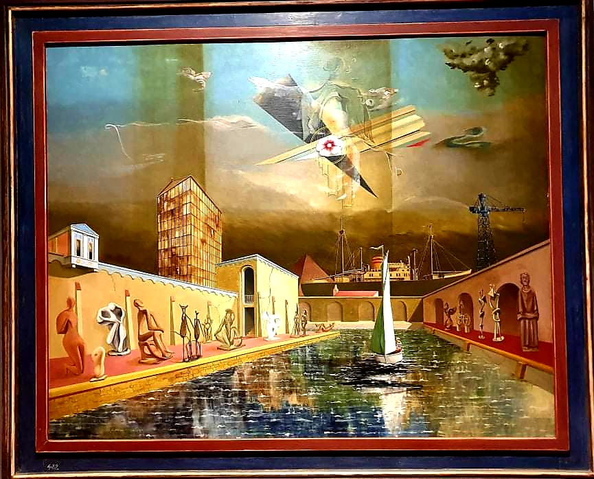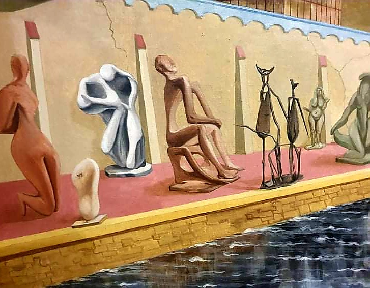 FRANZ RADZIWILL (*6.2.1895 – 1983) in seinem langen Leben hat er – das zeigen die 3 Bilder aus der 125. Geburtstag Retrospektive im Oldenburger Schoss, fotografiert 9/2020 – sich immer wieder dem Surrealismus angenähert, ob in der „Landschaft mit weißen Bäumen“ von 1923, dem „Pfirsich“ von 1932 oder den „Museumsplastiken im Freien“ von 1954, das ich mit seinen vielen Details und einem von mir ebenfalls manchmal realisierten Sujet (gemalte Skulpturen) besonders liebe.