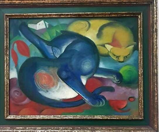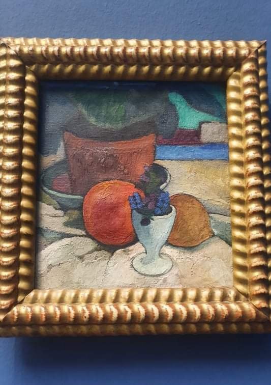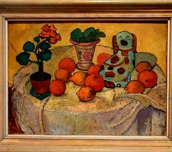 Die beiden Katzen malte Marc 2012 (ich fotografierte sie 2020 im Kunstmuseum Basel, Paula Modersohn-Becker malte ihren Fayencehund 1901 (wie auch ihr Selbstbildnis in Oldenburg 2020 gesehen) das Selbstbildnis ist wie das 2. Stilllebenbild (in der Bremer Kunsthalle 2021 fotografiert) 1905 entstanden.