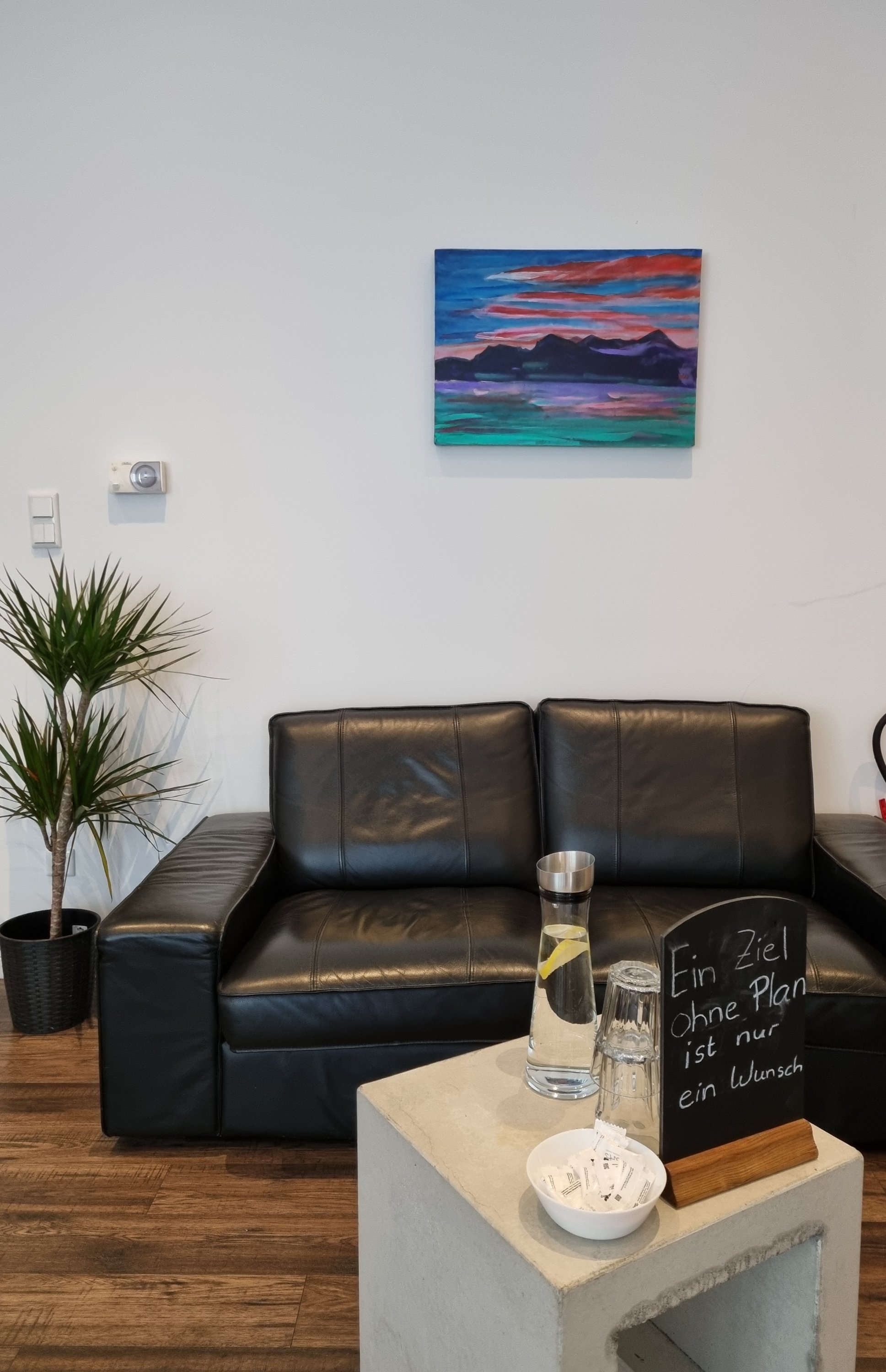Im terra sport studio Dortmund-Hörde hängt mein Bild „la Pineta“ von 2020. Das für meinen Rücken seit 7 Jahren ungemein wichtige EMS Trainingsstudio (Elektromuskelstimulanz) im schönen alten Gebäude (1916) in der Nähe des Phönixsees bietet ein schönes Ambiente auch für das 2. YvonneWilkenPainting von 2020, „Abendrot im Tessin“.