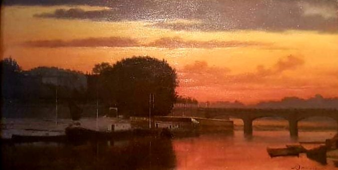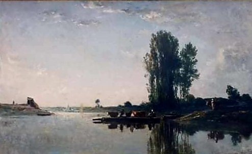 ich wollte vom großen französischen Landschaftsmaler CHARLES-FRANÇOIS DAUBIGNY, der heute seinen 205. Geburtstag hätte (1817-1878) eine ganze Reihe von Werken zeigen, denn er ist mir seit dem 1. Bemerken im Sommer 2017 in dem eigens für ihn und seinen ebenfalls malenden Sohn Karl Daubigny eingerichteten Musée Daubigny in Auvers sur Oise mehrfach in gut bestückten Museumssammlungen begegnet (z. B. Frankfurt, Leipzig, Berlin). Ich hätte mich dann beinahe dazu entschlossen, nur diesen wundervollen Blick auf den „pont de la Concorde à Paris“ (1836/37) im Abendsonnenschein als Einzelstück auszuwählen, denn ich finde ihn überwältigend schön, fühle mich sofort mit hineingenommen in meine Lieblingsstadt (neben Dortmund😉) aber ich werde doch noch mehr von ihm zeigen…Frühlingslandschaft von 1862, schon sehr impressionistisch. Er gehörte zur Freiluft-Malerschule von Barbizon und bereitete dem Impressionismus den Weg. Gesehen in Berlin, Alte Nationalgalerie„Le bac“ – die Fähre von 1864, gesehen im Leipziger Kunstmuseum 2019„Villerville sur mer en Normandie“ von 1868, in Frankfurt 2020 gesehen