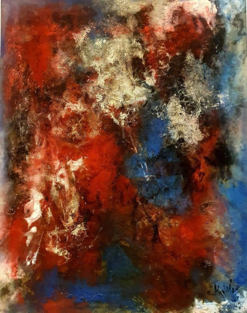 Heute vor 106 Jahren wurde Fred Thieler geboren. 3 Werke aus 3 Jahrzehnten („Komposition in rot und blau“, 1962, ohne Titel mit mir in front of ART 1972, und „groß, dunkel, wachsend“ von 1983) zeigen, dass er sich in seinen Bildern treu blieb. Ich liebe seine lodernden Farben (gesehen in der Kunsthalle Bremen 2021, im Märkischen Museum Witten, 2020, und in der Duisburger Küppersmühle 2019).