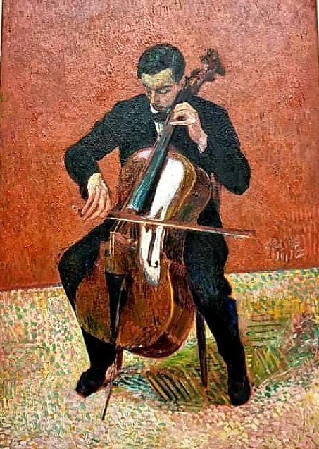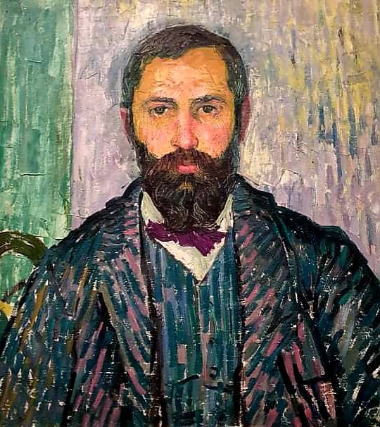 der am 28.3.1868 geborene Schweizer Künstler, der in seinem langen Leben (-1961) bis zuletzt wundervolle postimpressionistische Bilder geschaffen hat, wie das „Selbstbildnis“ von 1907 (gesehen im Frankfurter Städelmuseum 2020) oder „der Cellist Hans Münch“ von 1916 (gesehen im Kunsthaus Zürich), und in 2 Künstlerverbänden gleichzeitig Mitglied war: in der Dresdener Brücke und der Gruppe um Gauguin im bretonischen Pont-Aven.