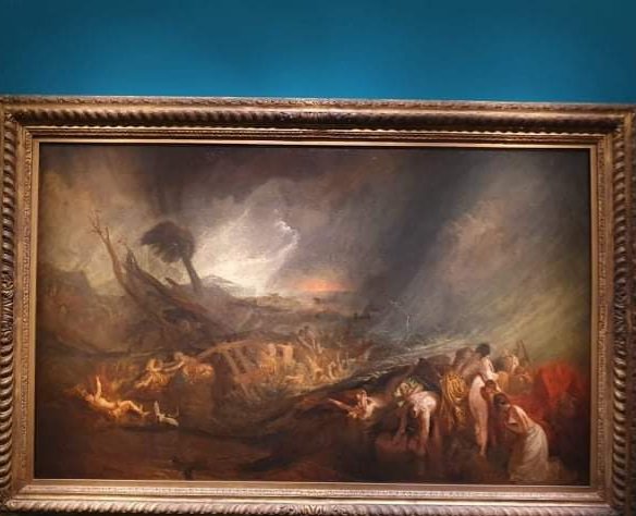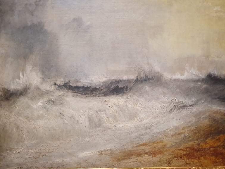 Heute vor 247 Jahren wurde JOSEPH MALLORD WILLIAM TURNER, kurz William Turner, oder, wie er in der famosen Ausstellung „Turner – Horror and Delight“ vor gut 2 Jahren im LWL Museum Münster geschrieben wurde, J.M.W.TURNER in London geboren. Im Jahr 1851 starb er dort. Seine Bilder zeugen aber von zahlreichen Reisen (auch in NRW hat er gemalt), wie hier in Grenoble (aus dem Frühwerk: 1802) und Genf und Umgebung (Aquarell aus dem Spätwerk: 1840). Das Selfie ist vor dem Frühwerk „Sintflut“ (1805) entstanden. „Im Wind brechende Wellen“ (1841) wieder aus dem Spätwerk. Der Blick auf diese 4 Bilder und ihre Entstehungszeit zeigt auch, dass Turner sich im Laufe seines Lebens vom Romantiker zum Vorläufer des Impressionismus entwickelte.