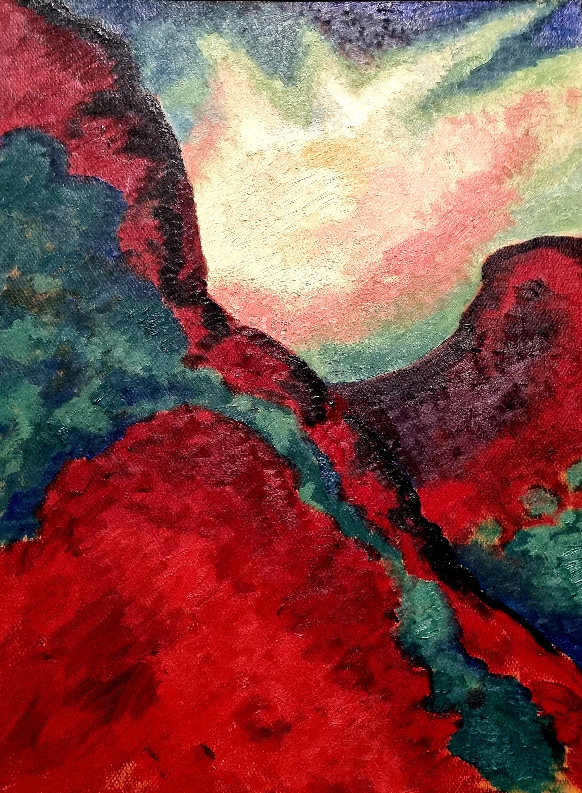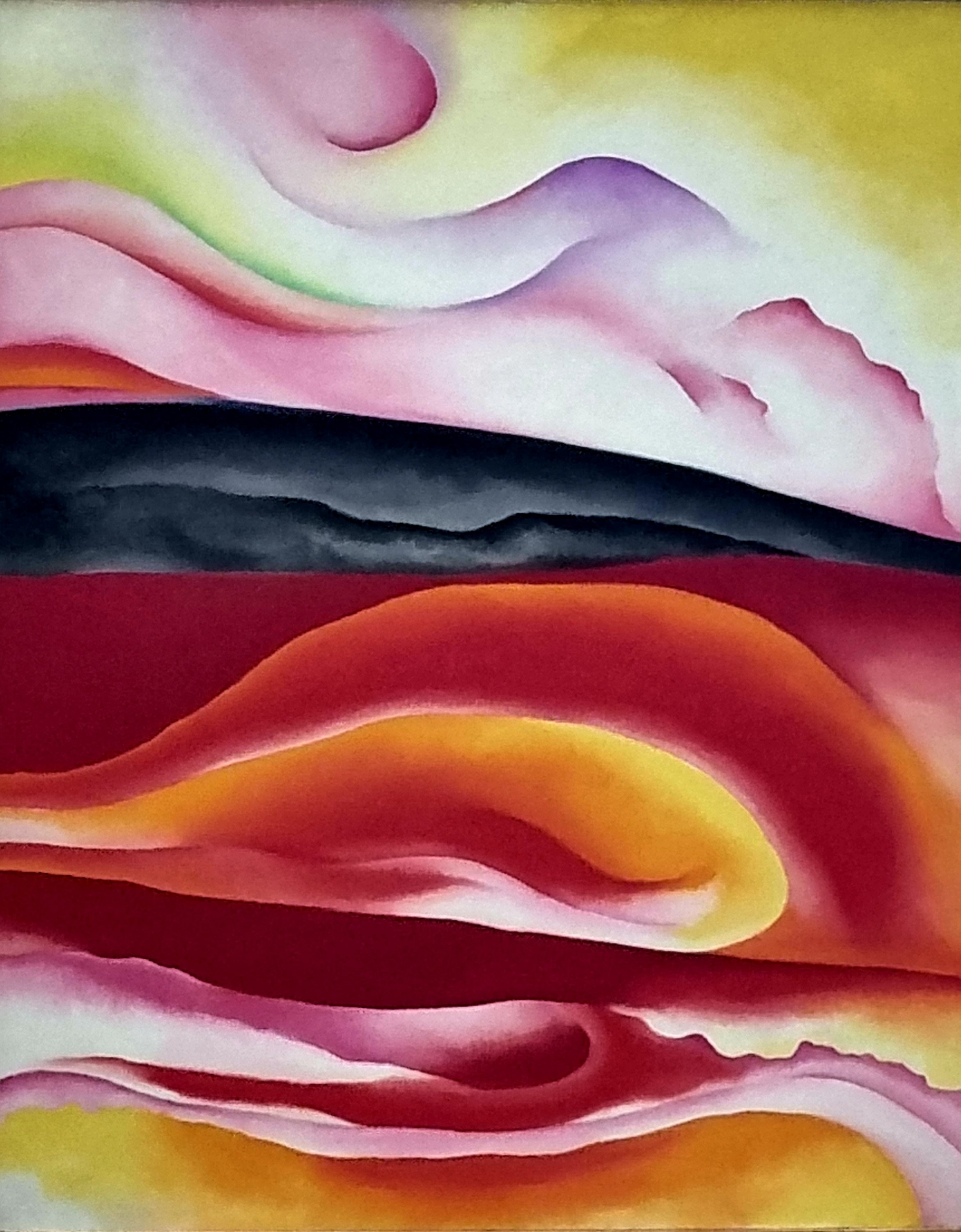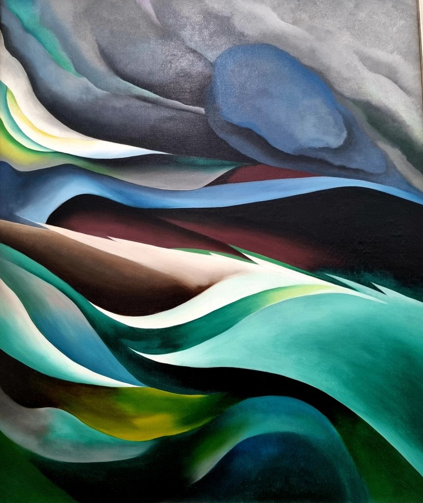 Schon 1916/1917 entstandenwhat I loved most @ Fondation Beyeler , Riehen bei Basel – am besten gefielen mir in der großen, 85 Gemälde umfassenden Retrospektive zur amerikanischen Malerin GEORGIA O’KEEFFE (1887-1986) ihre zwischen 1920 und 1924 entstandenen Bilder mit schwungvollen, mitreißenden Formen und klaren, oft kontrastierenden Rot- Rosa-Orange und Türkis-Grün-Blau-Tönen, die alle von der Natur inspiriert wurden und zumeist Namen tragen wie „Trees in Autumn“, „Chestnut Tree“, „From the Lake“. Man muss es gesehen haben, es lohnt sich!